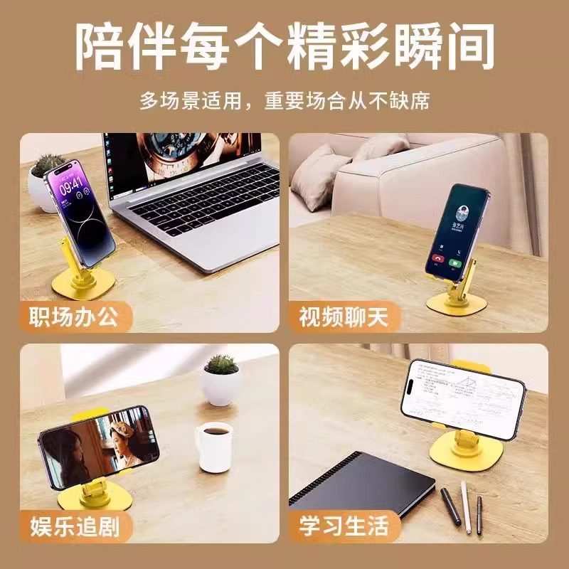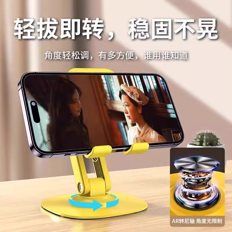 手机支架桌面金属360度旋转机械声可折叠懒人便携收纳直播ipad平板支架床头追剧看电视升降支撑架子 木惠