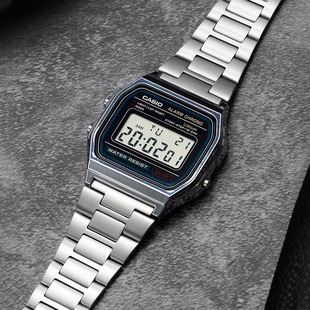 A159W 石英电子A158W casio卡西欧手表男士 复古小方块银表学生女款