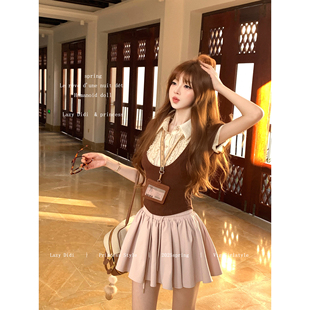 抽绳裤 学院风双色短裙减龄夏季 裙a字百褶半裙 Didi等你下课 Lazy