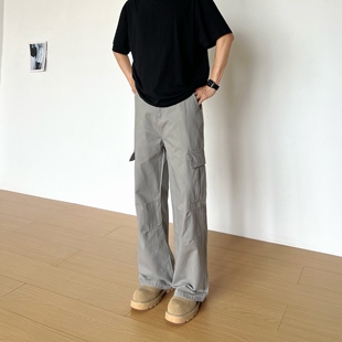 复古做旧工装 口袋伞兵裤 裤 复古潮小众宽松直筒阔腿裤 美式 BBC