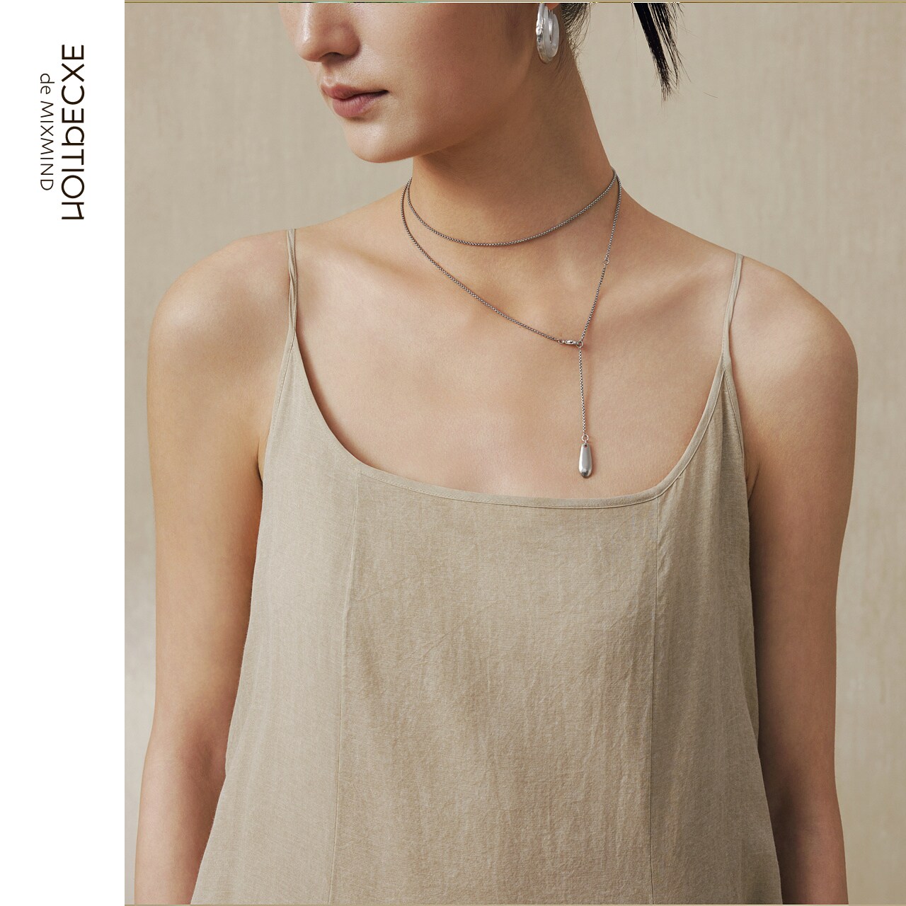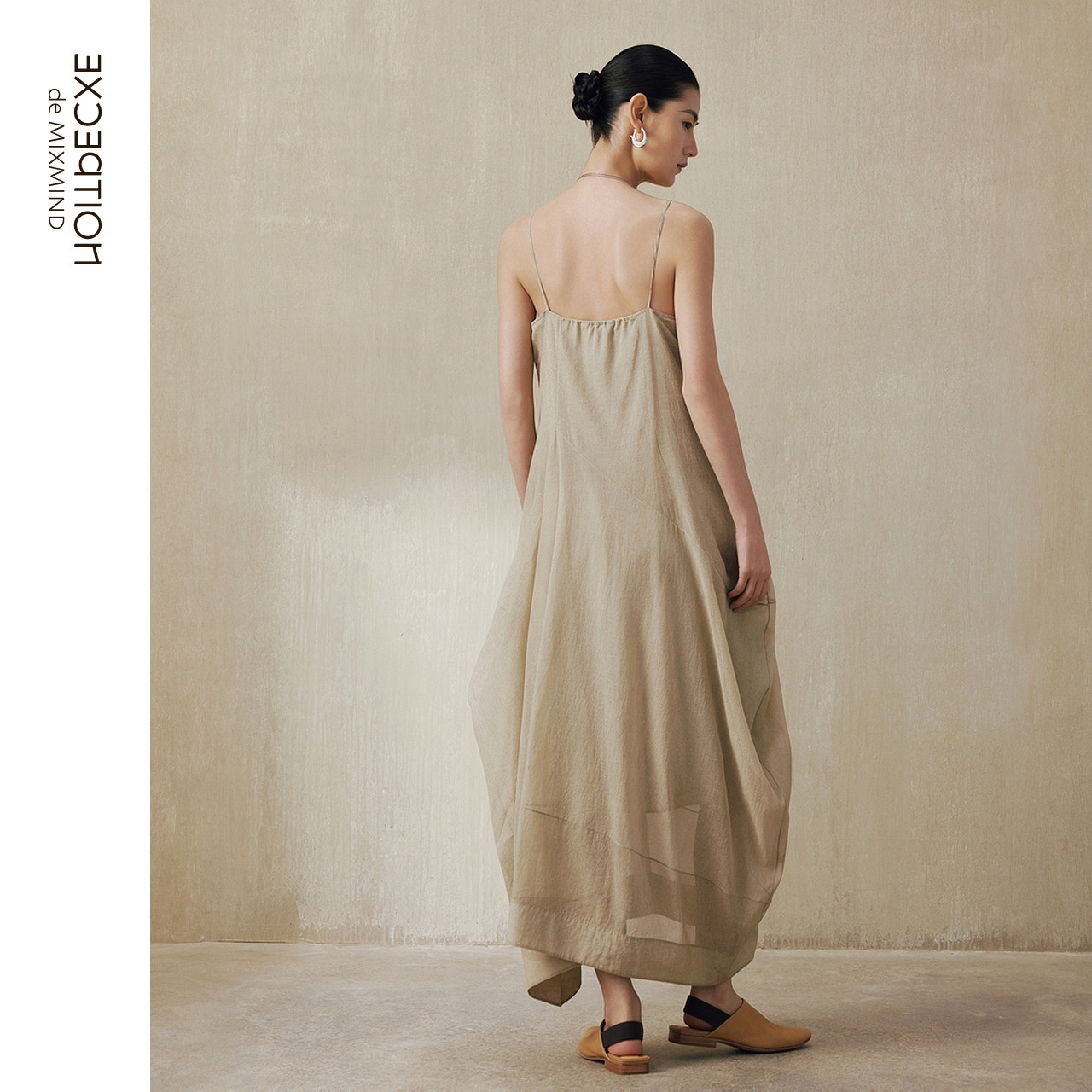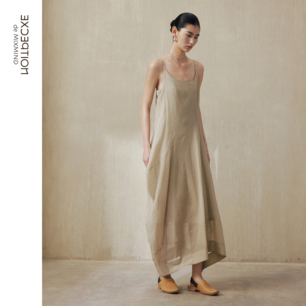 EXCEPTION例外女装 气质吊带背心长裙不规则设计连衣裙 中式