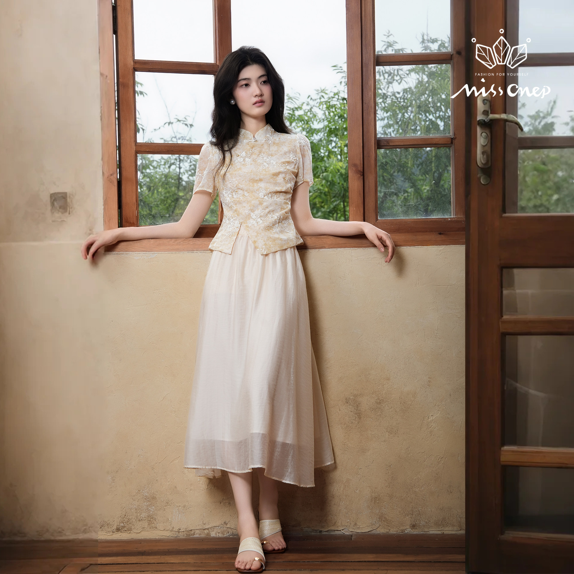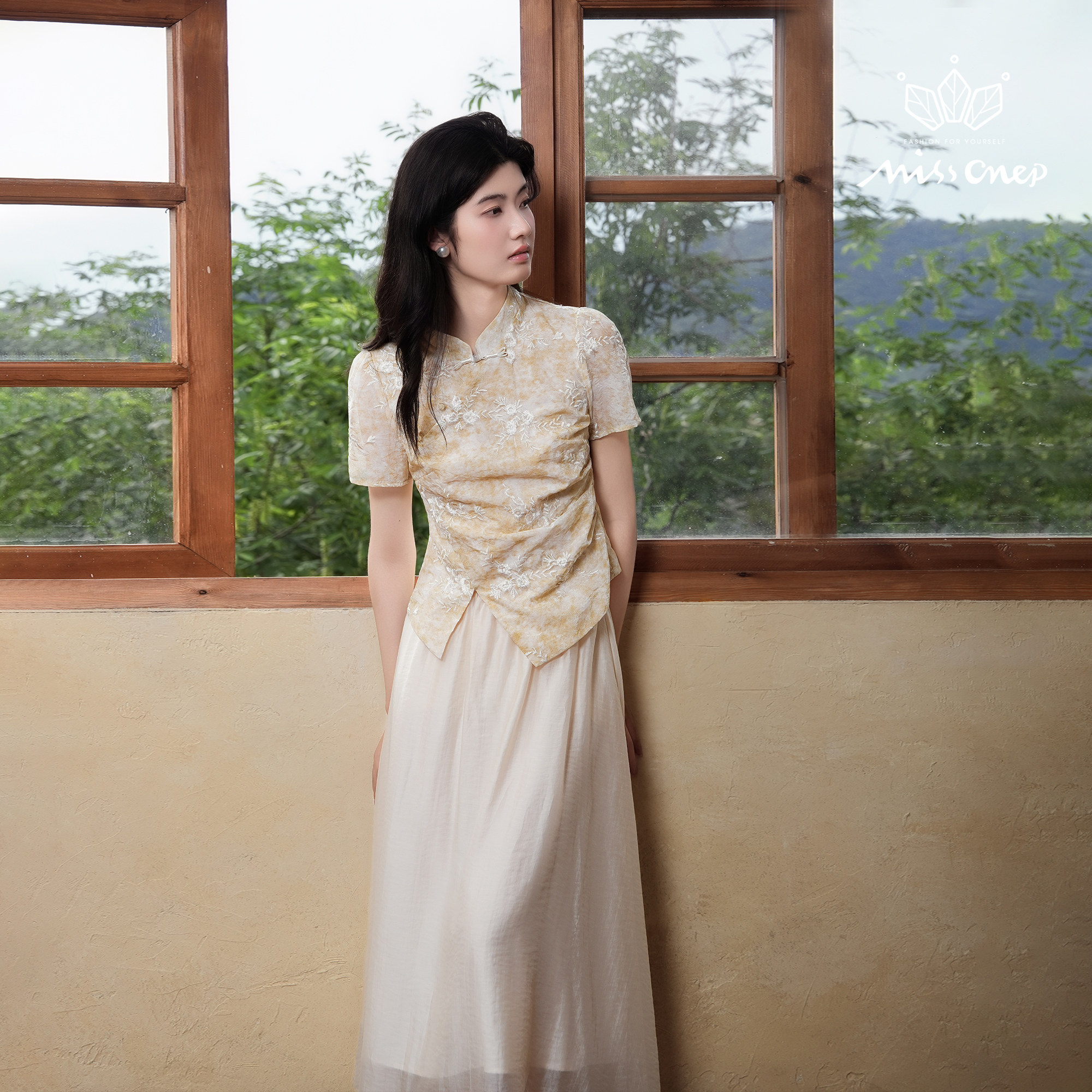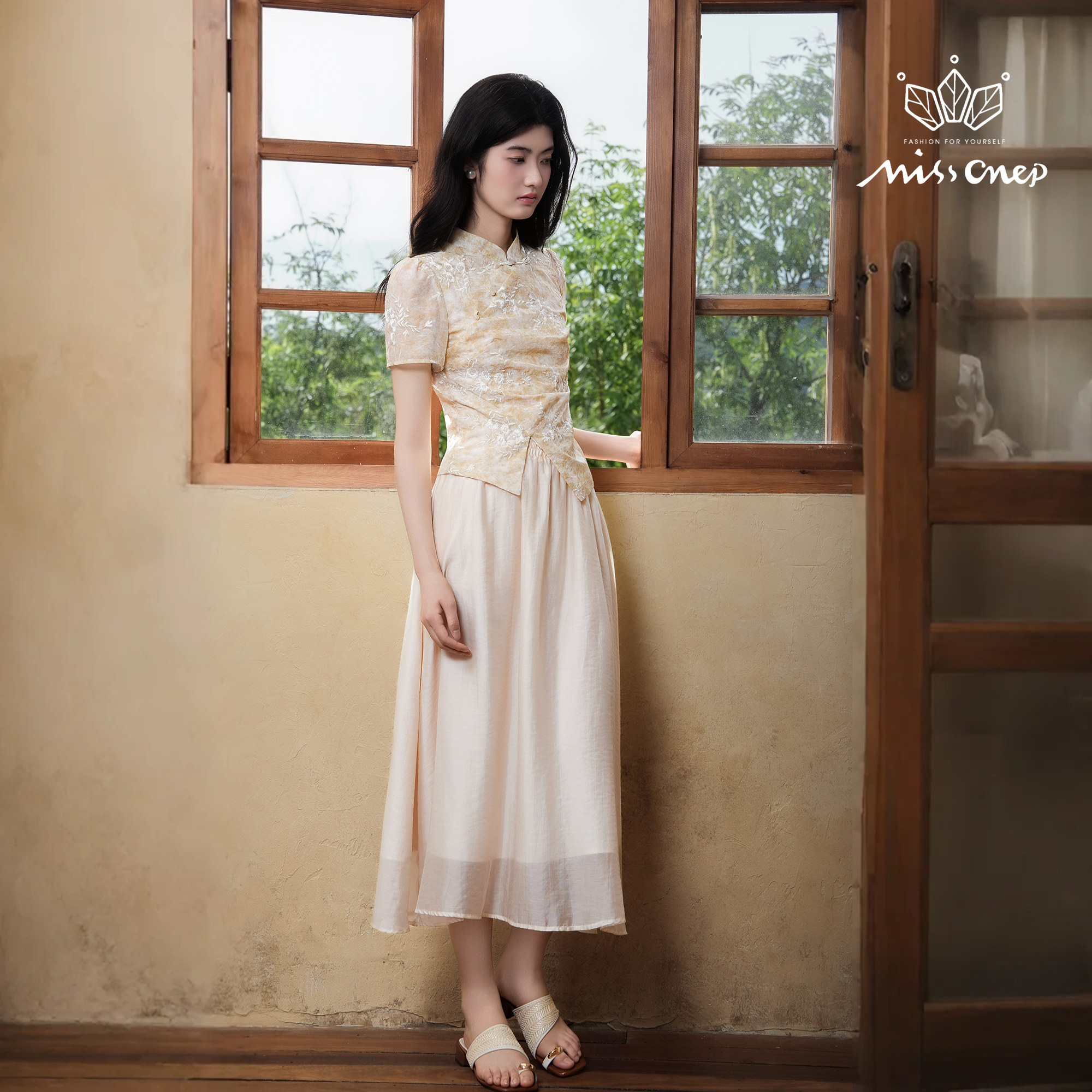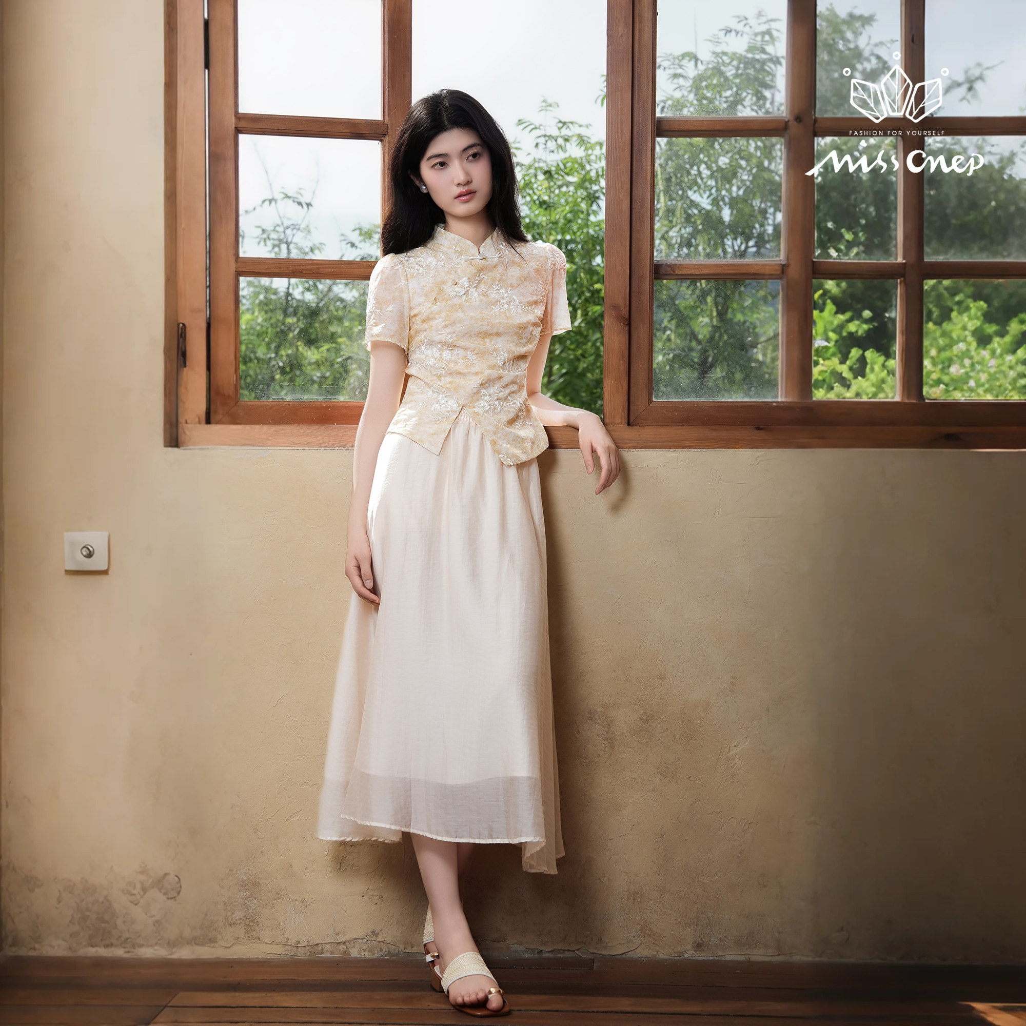 刺绣上衣配半身裙套裙女夏季 中国风盘扣短袖 夏如棠 Missonep蝉