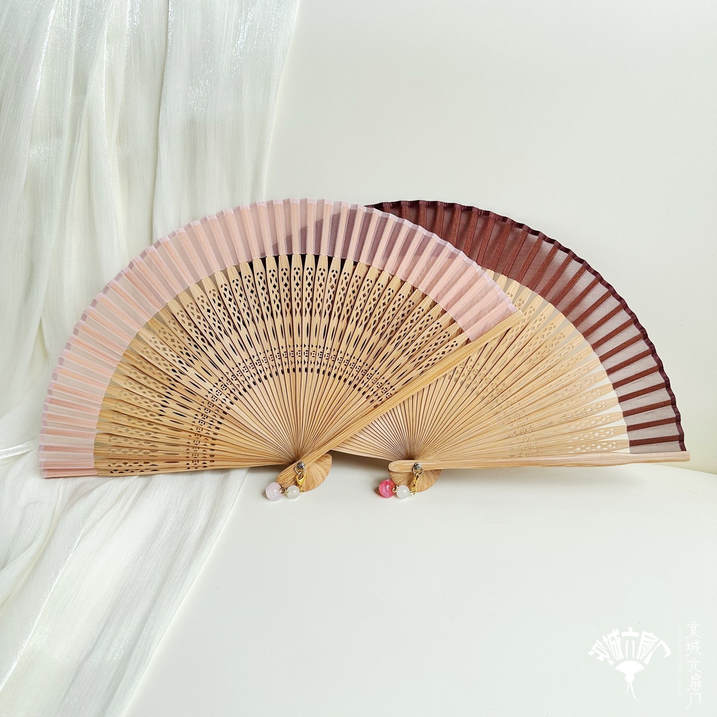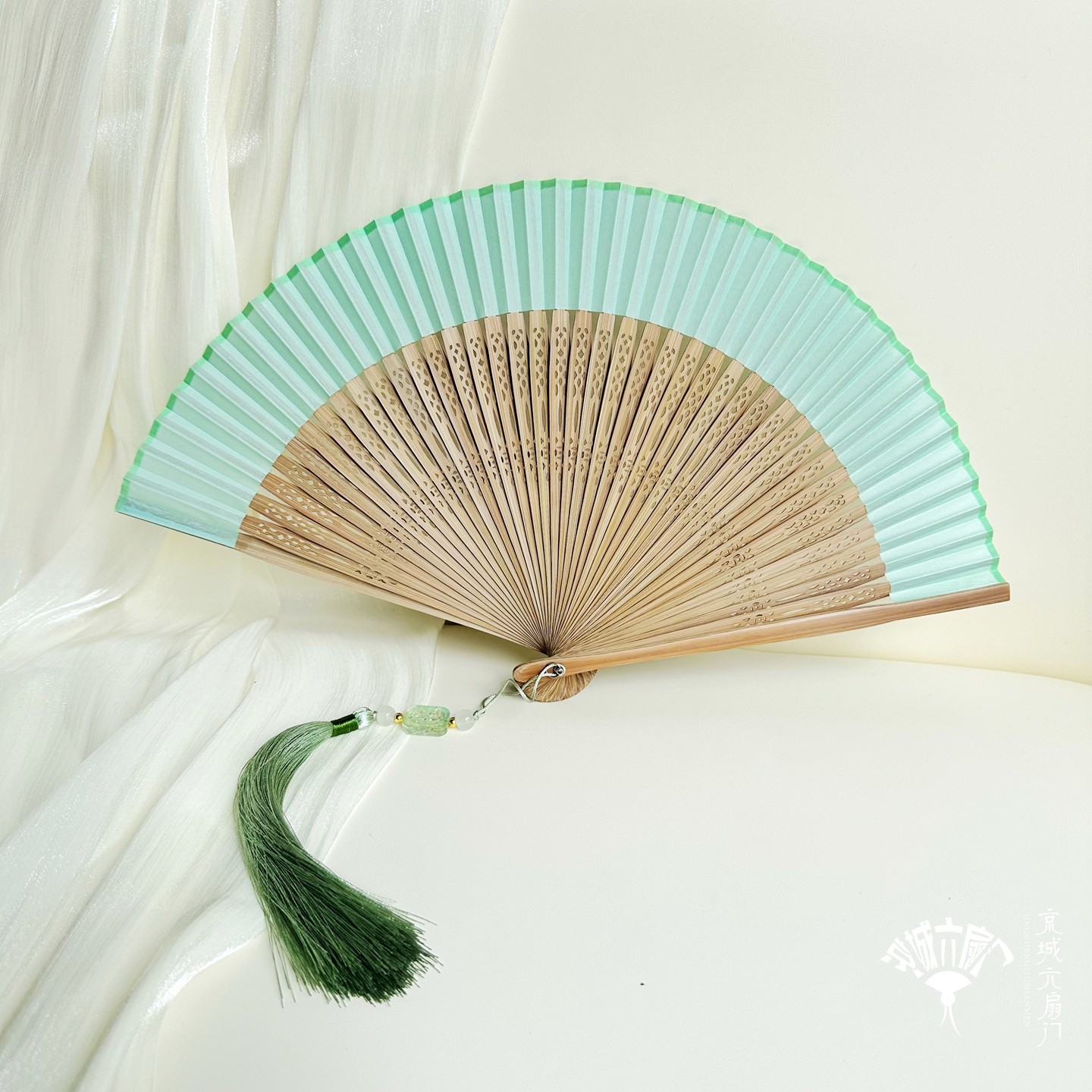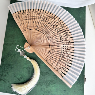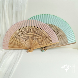 中国风汉服便携迷你折扇纯色镂空雕刻素雅夏季 日用小扇子藏青