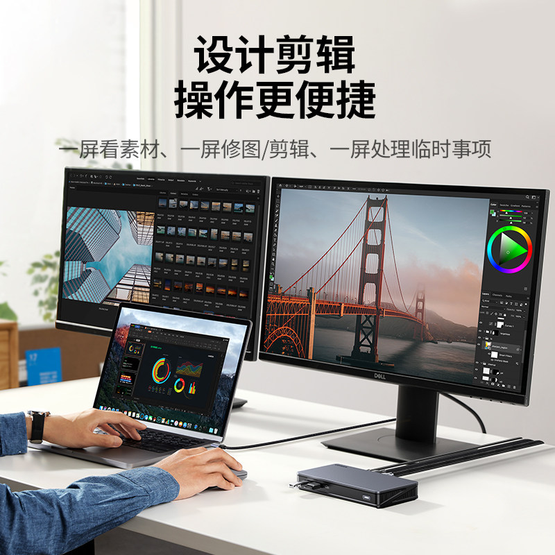 绿联桌面拓展坞typec转hdmi投屏DP1.2三屏异显扩展USB3.2分线器转