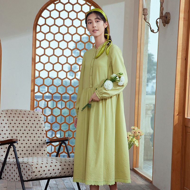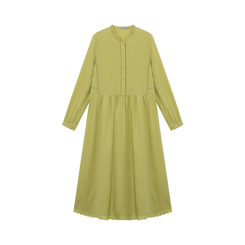 一城画一秋季 连衣裙14153A165 简约大气百搭小A摆设计纯色长款