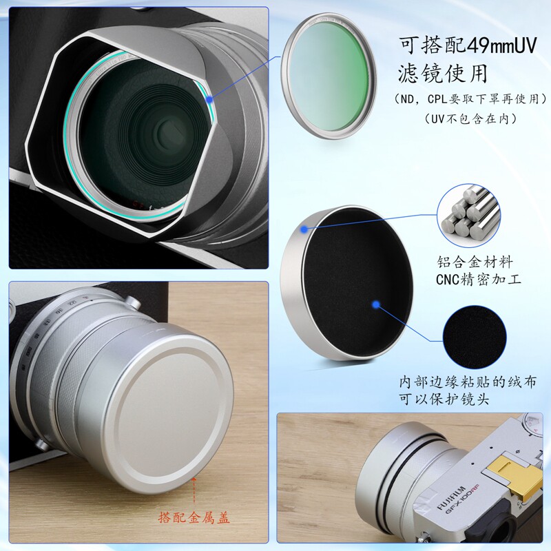 号歌适用于Fujifilm富士GFX100RF相机内方形金属遮光罩gfx 100rf遮光罩中画幅相机配件