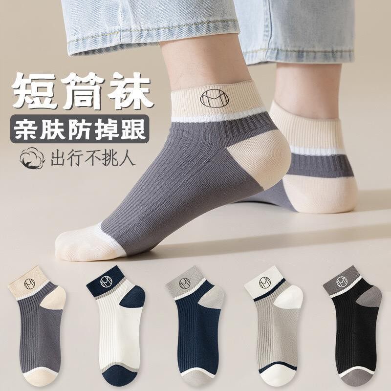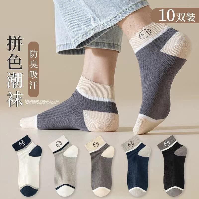 男士 短筒袜新款 袜子透气拼色防臭吸汗运动娃男生浅口船袜 新款 四季
