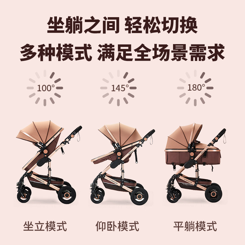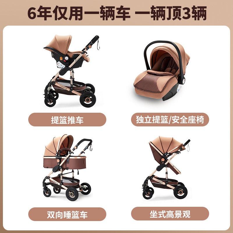 蓝色童年婴儿推车可坐可躺三合一多功能婴儿提篮推车0到3岁婴儿车