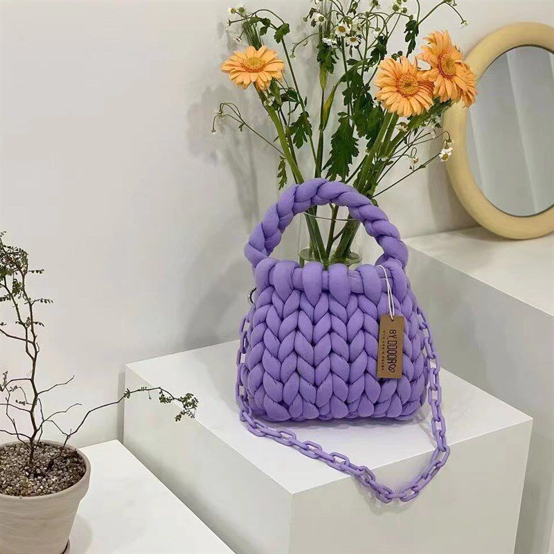 新款 大粗毛线包秋冬手P提编织包diy材料 手编自制冰岛毛线辫子包