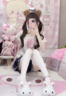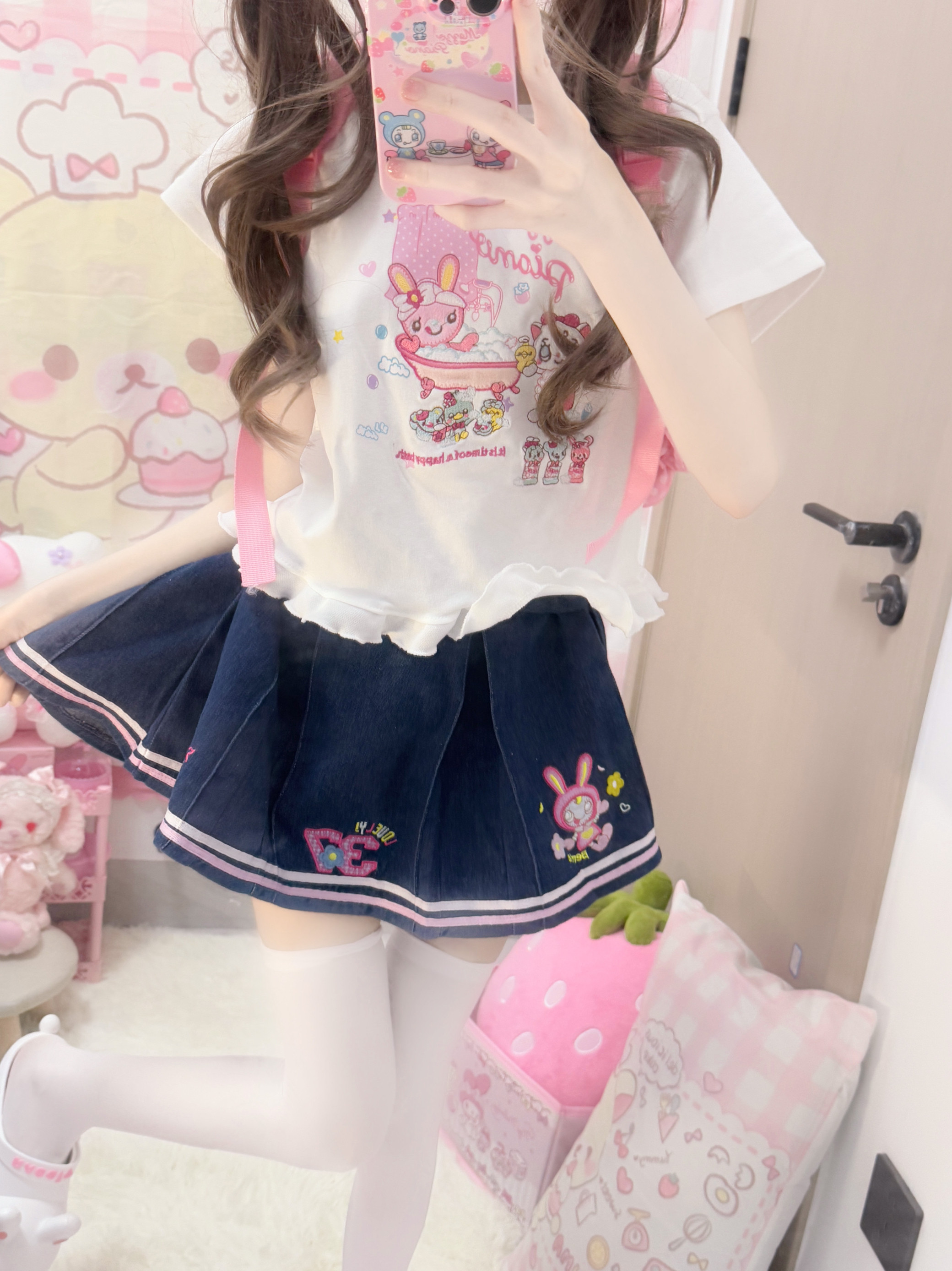 RichGirl少女自制可爱兔兔刺绣纯棉上衣牛仔裙刺绣mp短裙两件套