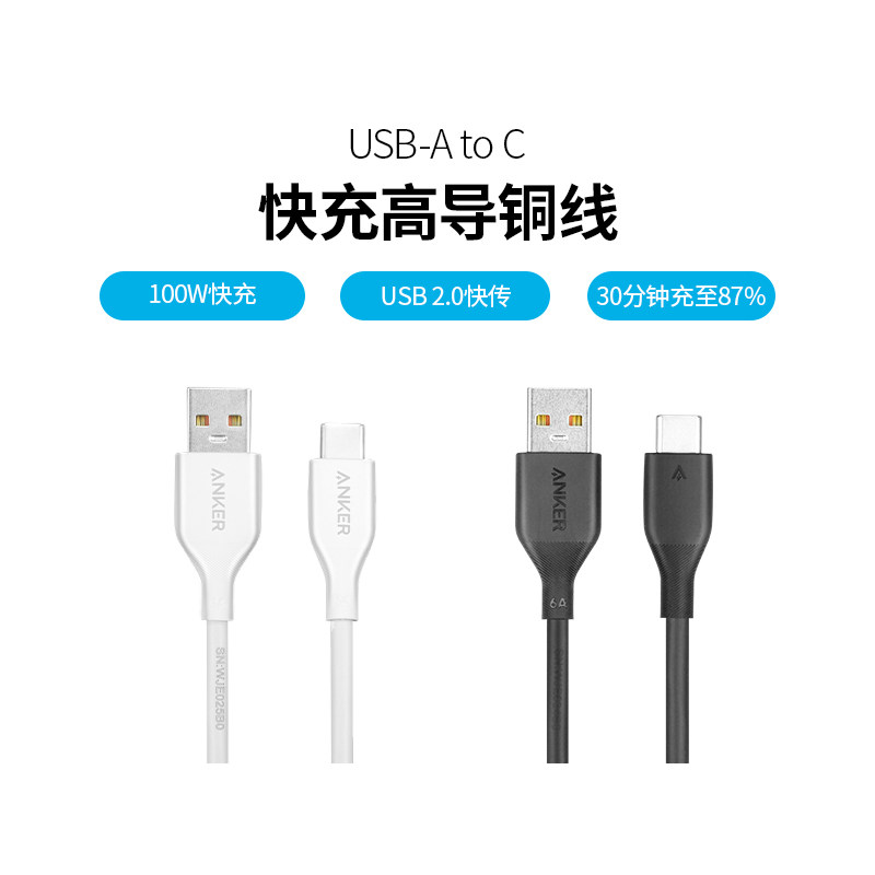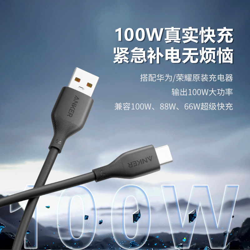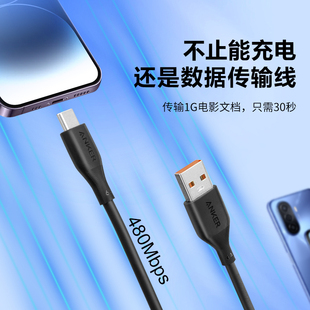 typec快充数据线A C充电线6A适用于安卓小米华为苹果手机AC USB Anker安克100W