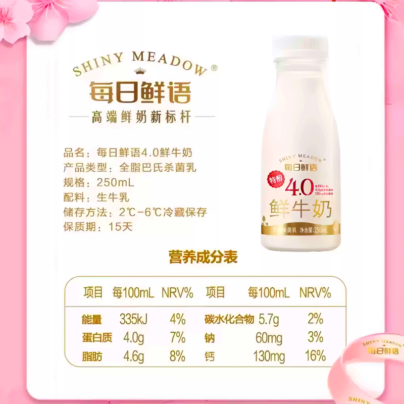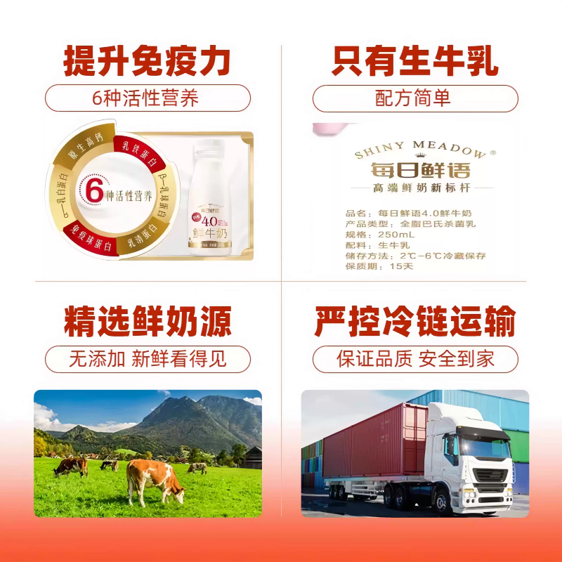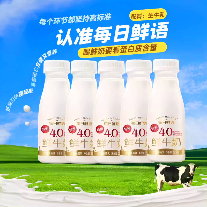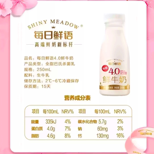 每日鲜语高端4.0鲜牛奶250ml瓶装 鲜奶生牛乳鲜奶百利包早餐奶