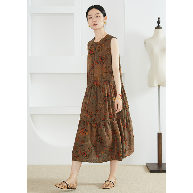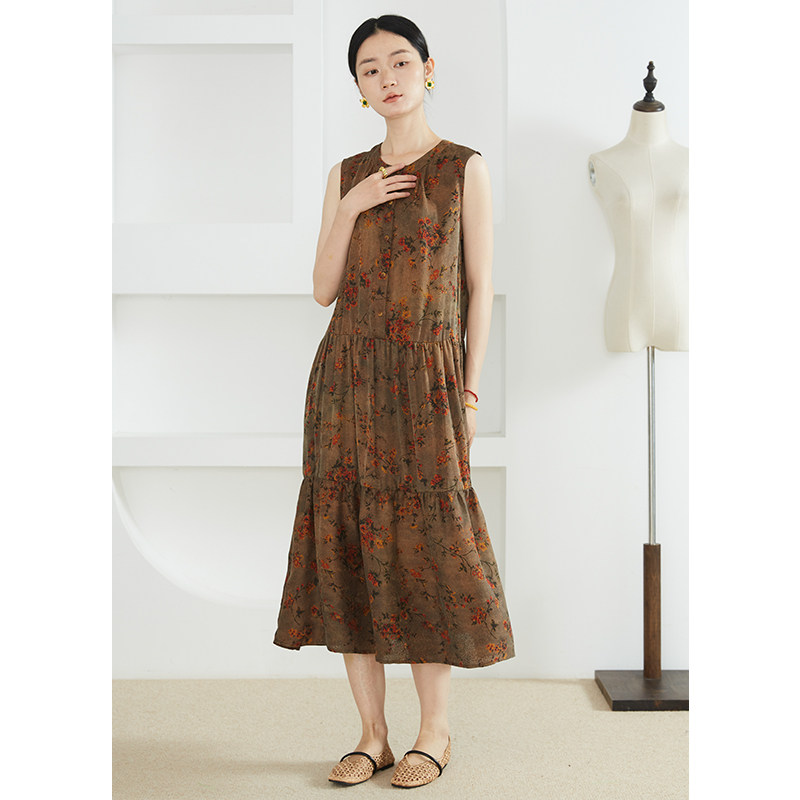 SILVIYE 背心裙碎花裙子100%桑蚕丝蛋糕裙 溯也真丝香云纱绞罗无袖