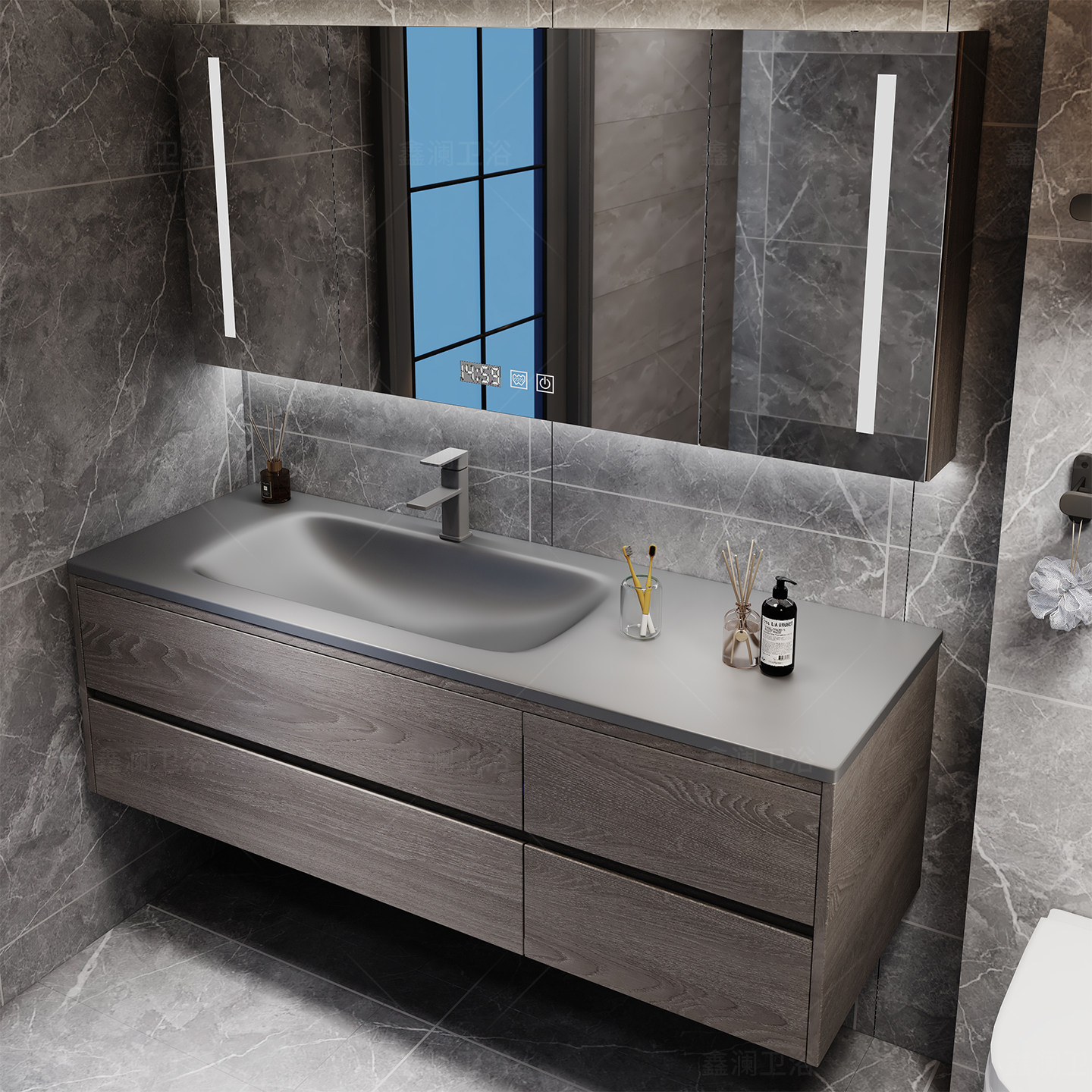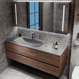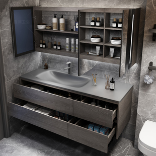现代防水全铝蜂窝铝热弯一体盆浴室柜组合卫生间智能镜柜洗手台盆
