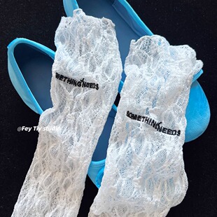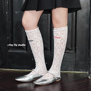 字母蕾丝小腿袜女薄款 搭配 透气网纱韩国ins 蕾丝刺绣袜子 feytiy