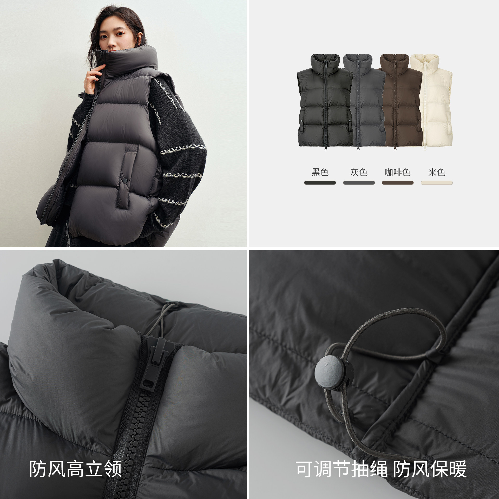 宽松保暖立领外套 新款 衣香丽影灰色泡芙羽绒马甲女款 外穿2025冬装