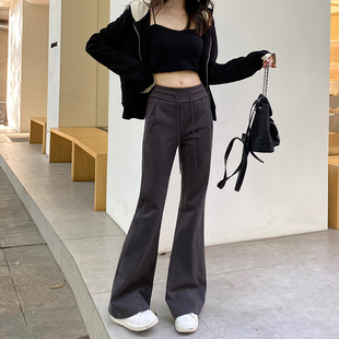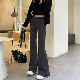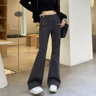 超长喇叭卫裤 秋冬休闲阔腿裤 女高个子175cm加长款 灰色微喇运动裤