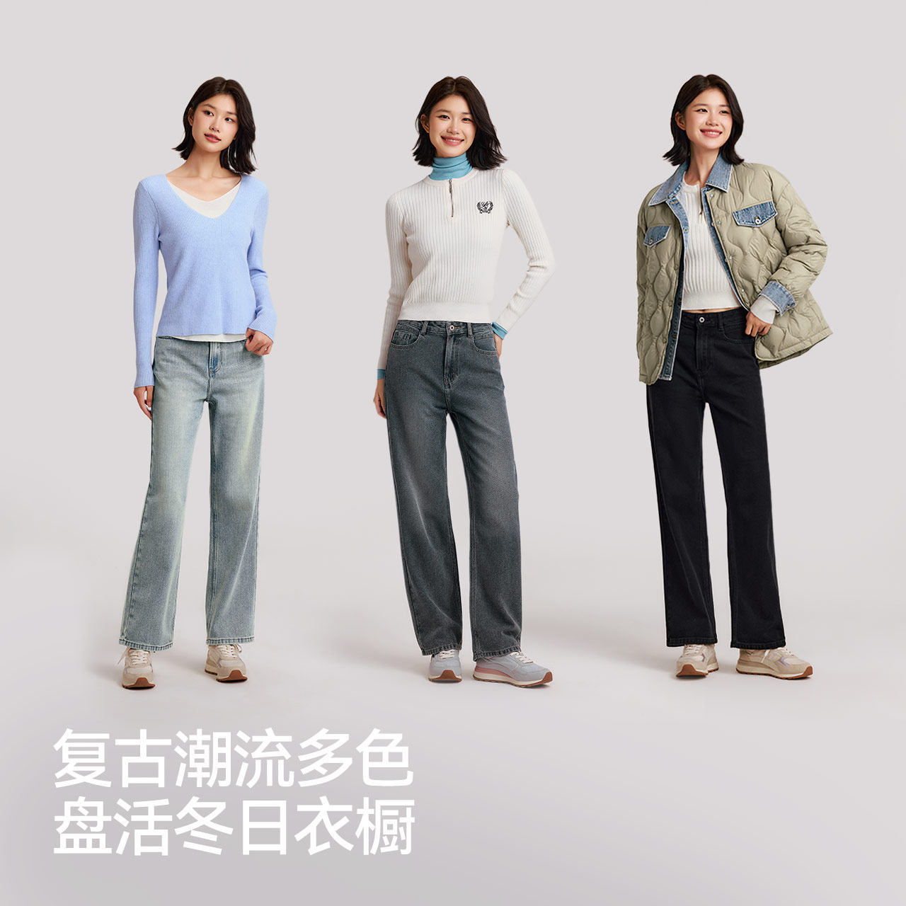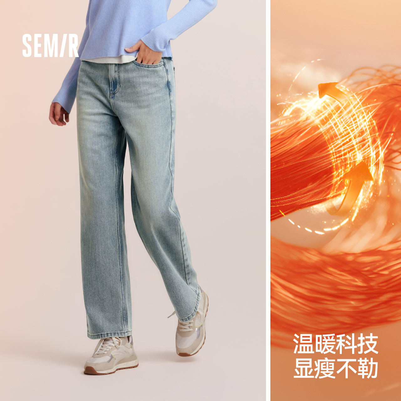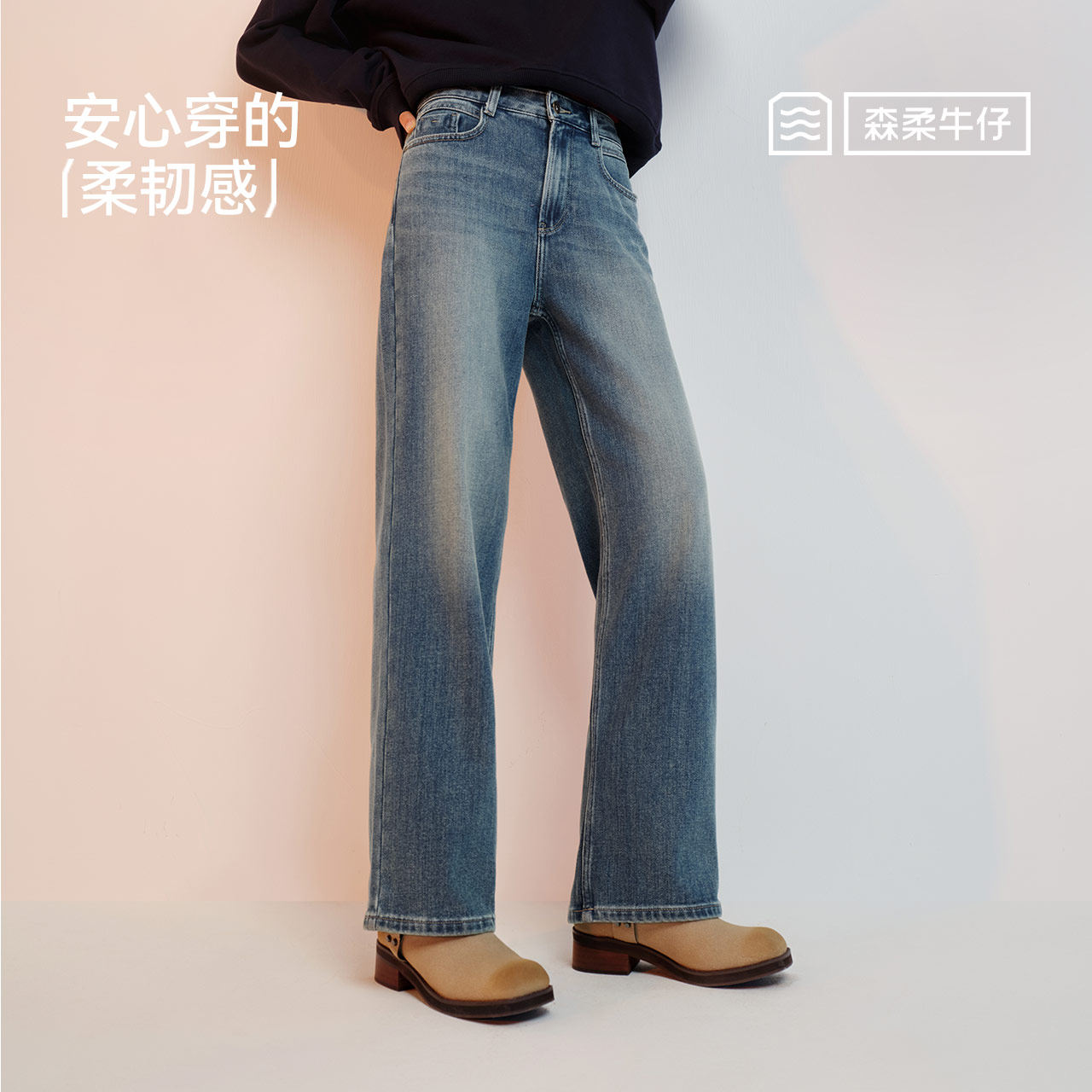 女舒适抓毛阔腿裤 森马牛仔裤 2024新款 冬季 森柔牛仔 长裤 商场同款