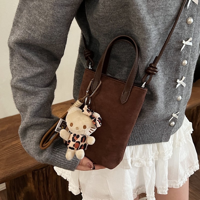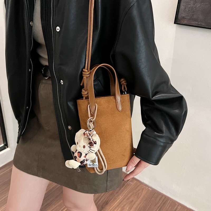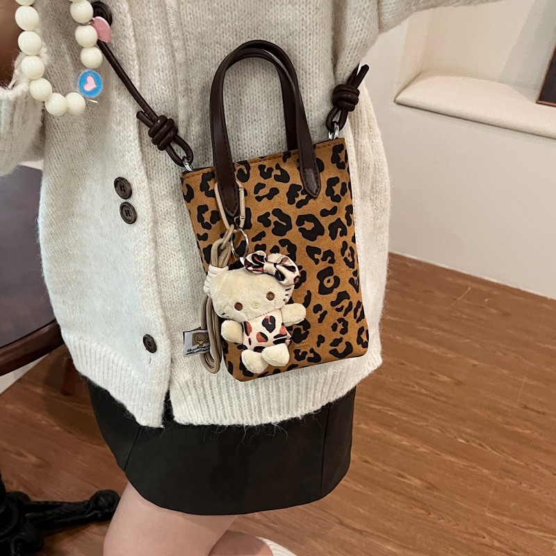 秋冬手提迷你小包包女2025新款 复古磨砂水桶包洋气斜挎豹纹手机包