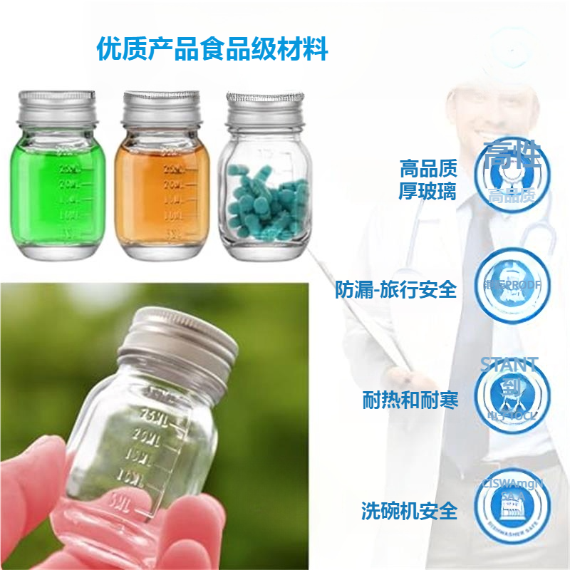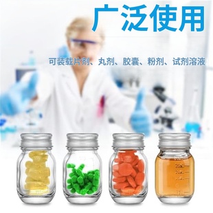 小玻璃瓶带盖子药水瓶粉末胶囊分装 瓶晶白料玻璃瓶带刻度30ml