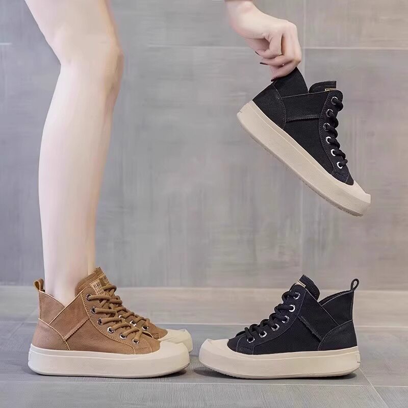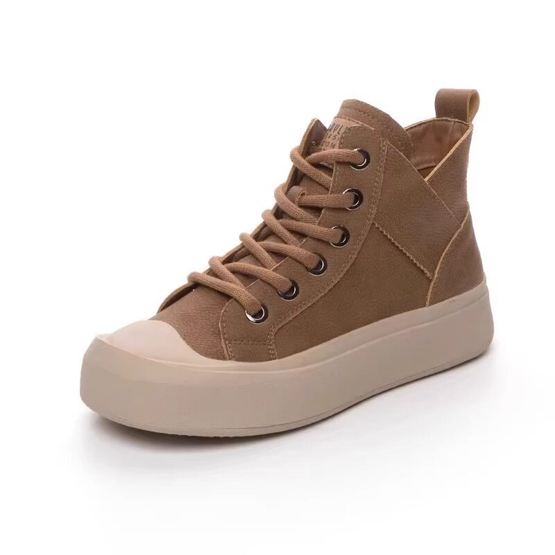 百搭运动休闲板鞋 真皮丑萌大头高帮鞋 复古软底女鞋 新款 女2025秋季