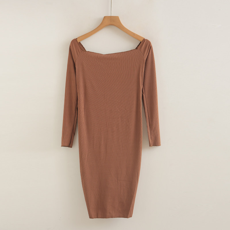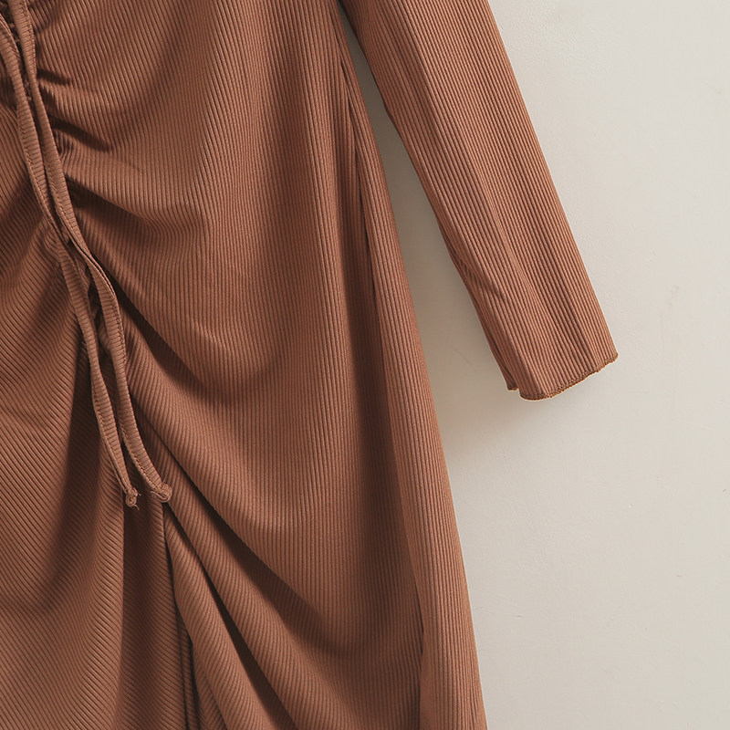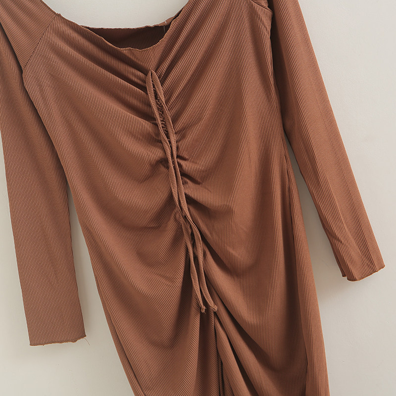 中长裙气质潮流不规则连衣裙女 一字领系带修身 抽绳包臀裙 秋季