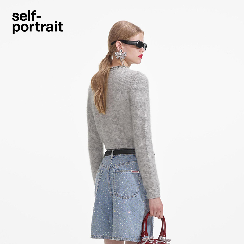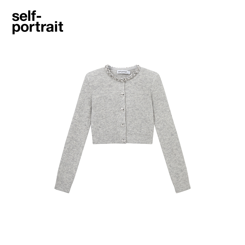 鞠婧祎同款 针织开衫 self 秋冬浅灰色千金短款 上衣 portrait