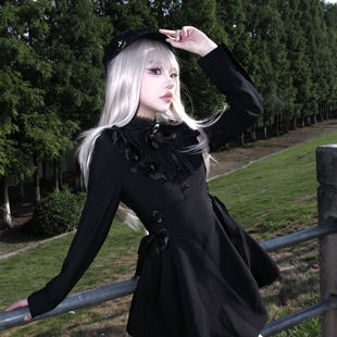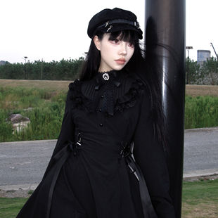 蝴蝶结绑带收腰显瘦连衣裙 原创设计秋黑色蕾丝长袖 muggle studio
