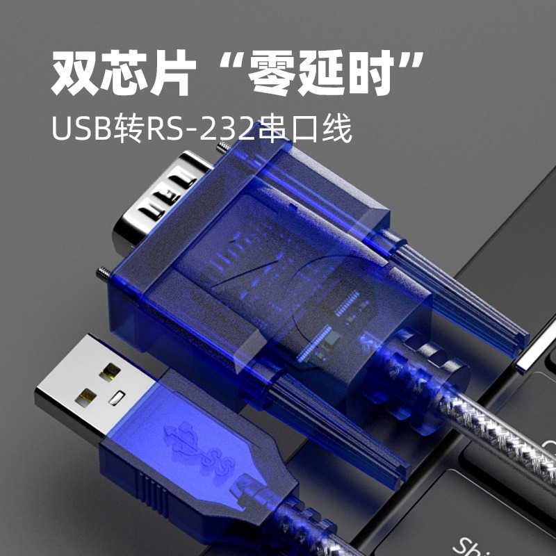 USB转232串口线DB9九针口串口usb转rs232窜口数据线公头母口com口九针数据传输转换线芯片打印机