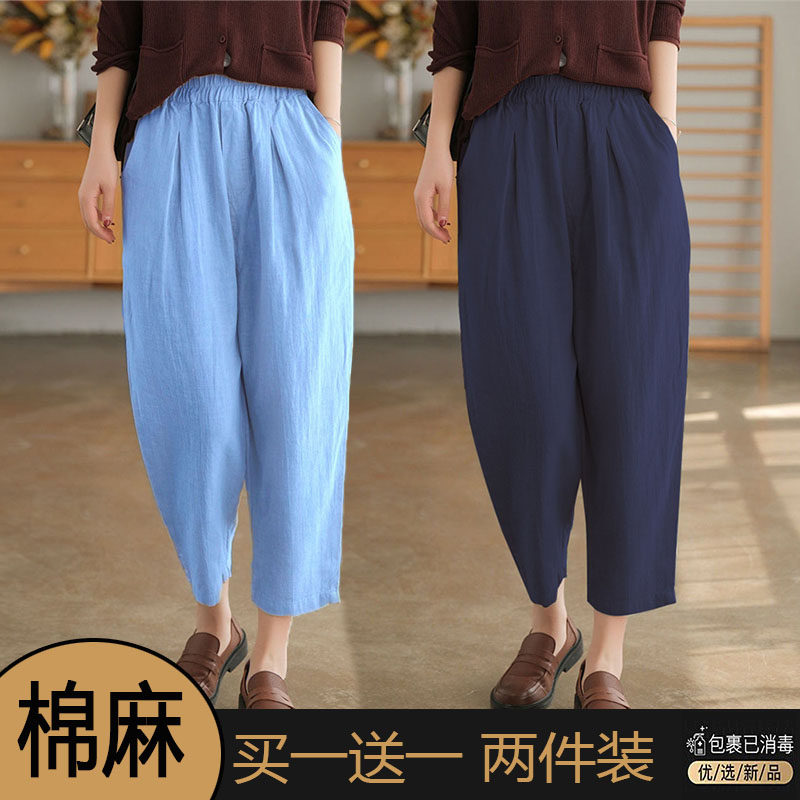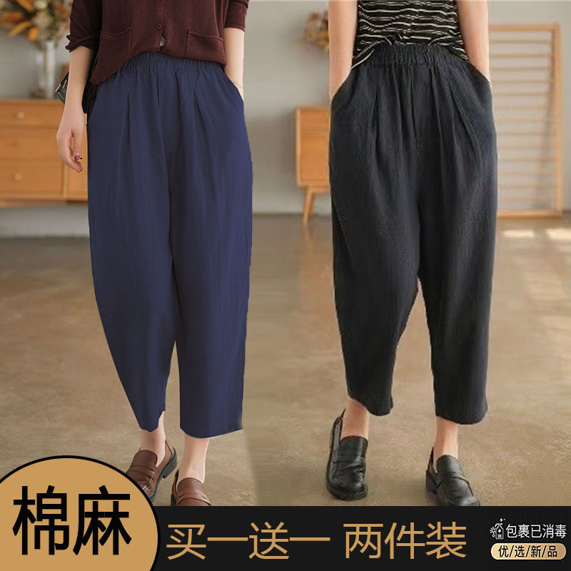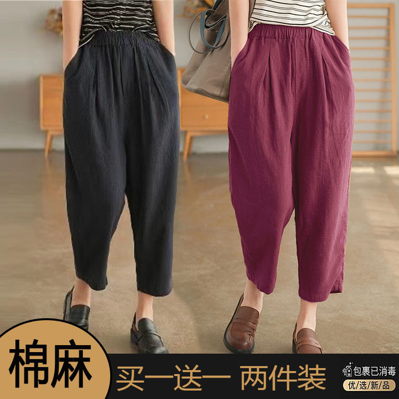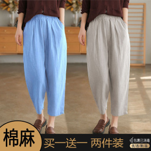 薄款 休闲哈伦裤 女百搭棉麻宽松大码 单 显瘦九分裤 夏季 萝卜裤 两件