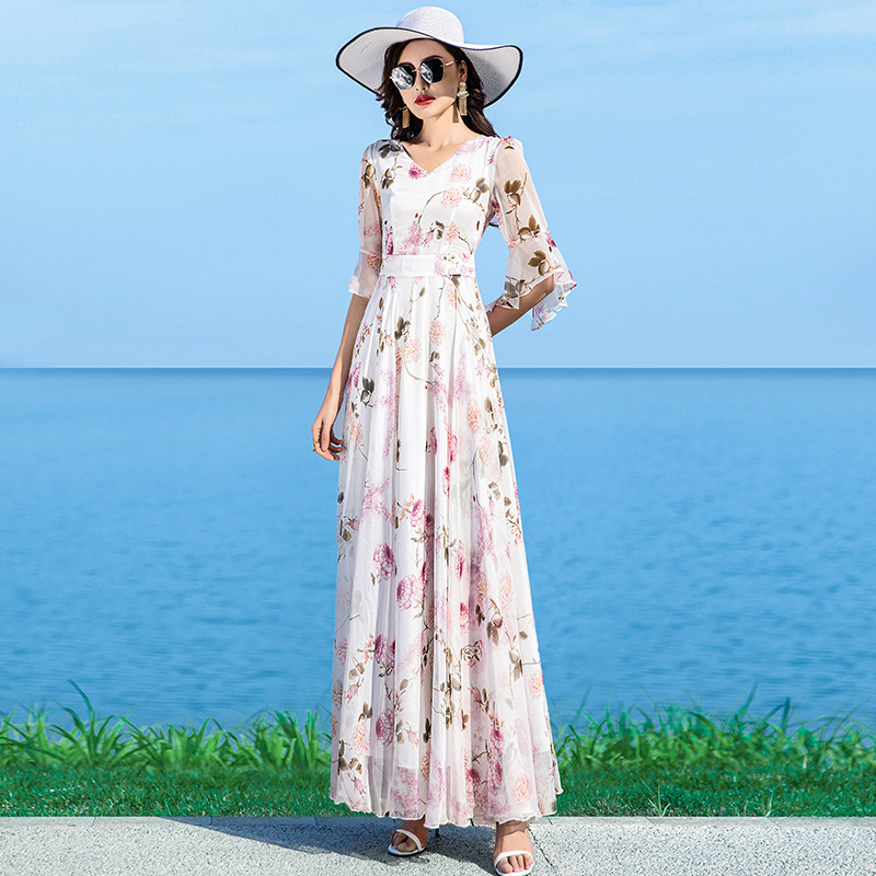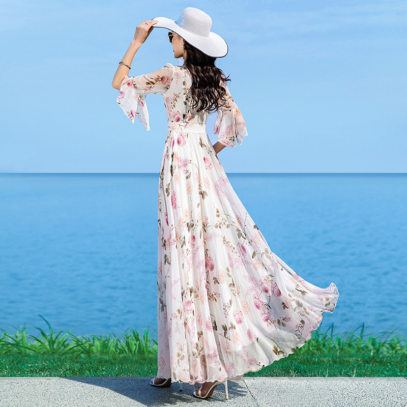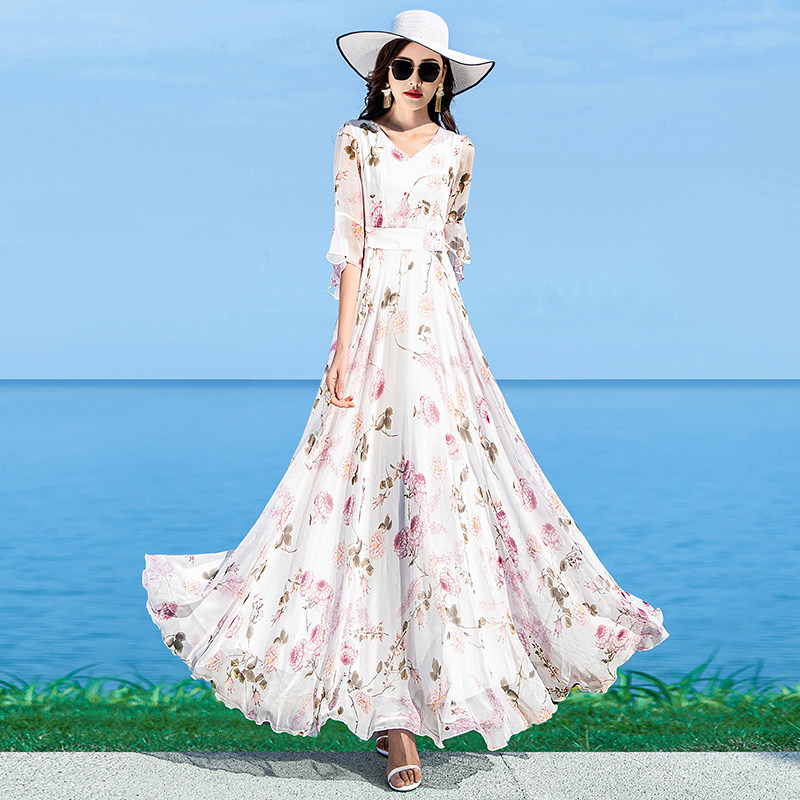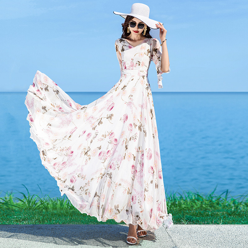 时尚 波西米亚乔其纱初恋气质淑女沙滩裙长裙 超仙雪纺纱连衣裙长款