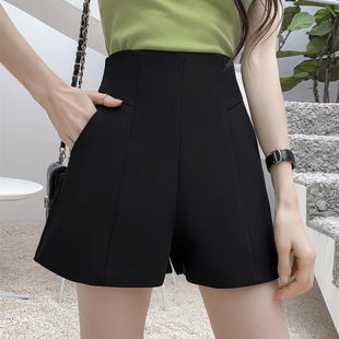 女夏季 直筒阔腿裤 美式 修身 子 辣妹性感热裤 黑色高腰小个子休闲短裤