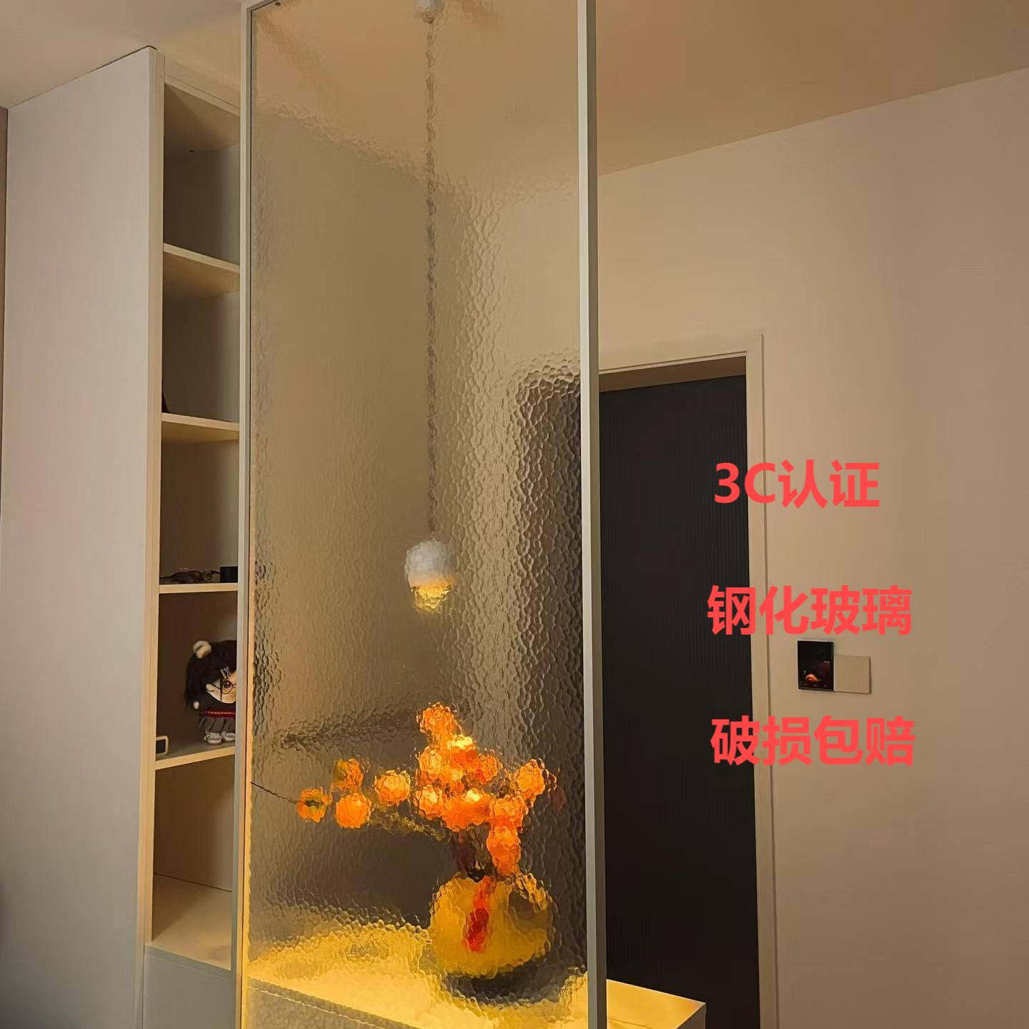3d艺术玻璃屏风正对门卫生间遮挡装 柜半墙奶油风入户玄关隔断 饰鞋