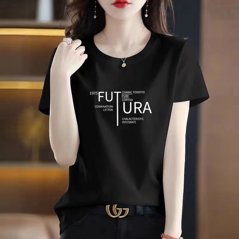 夏季 2025时尚 纯棉修身 新款 1975 圆领t恤女装 圆领上衣 正肩短袖
