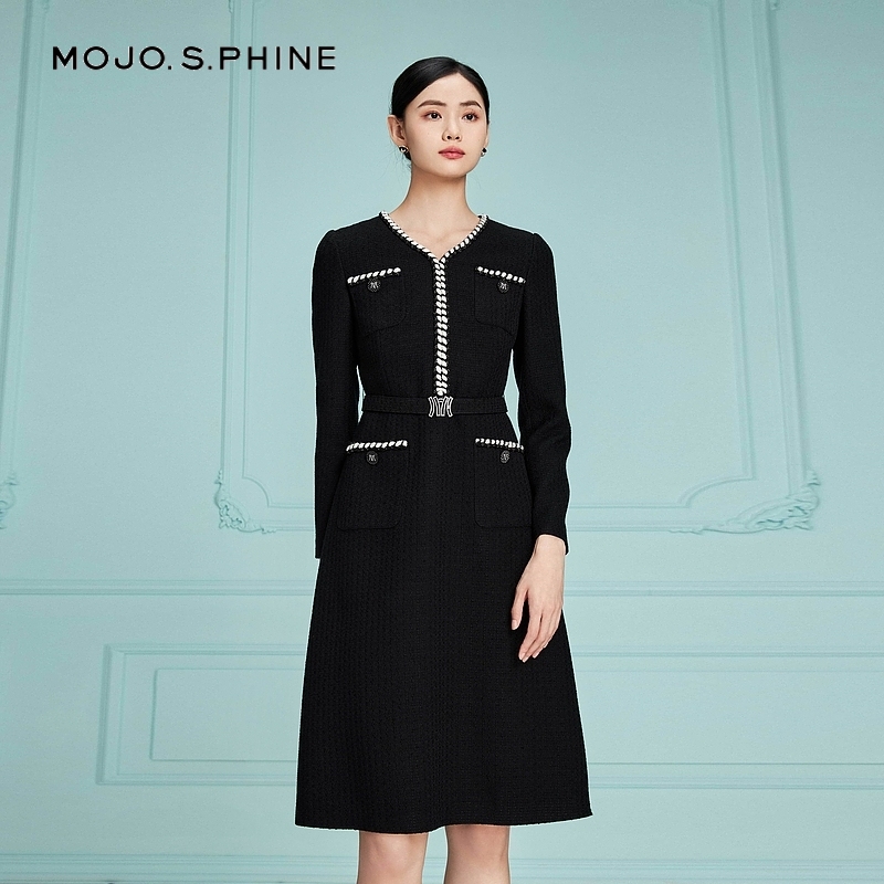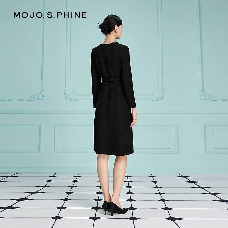 MOJO莫佐2023年秋冬新款 睿智精英系列小黑裙气质收腰显瘦连衣裙
