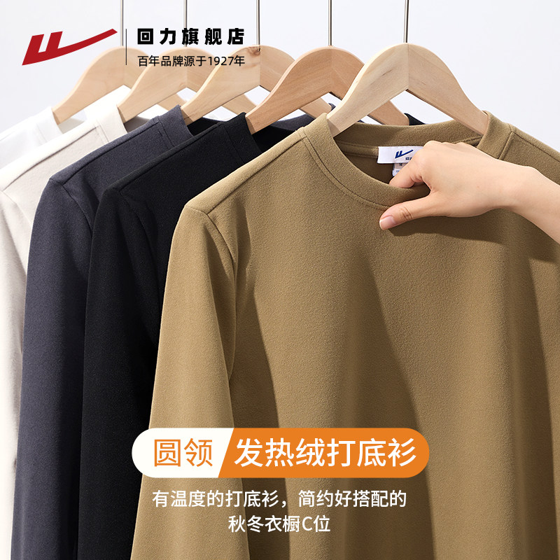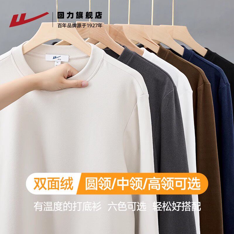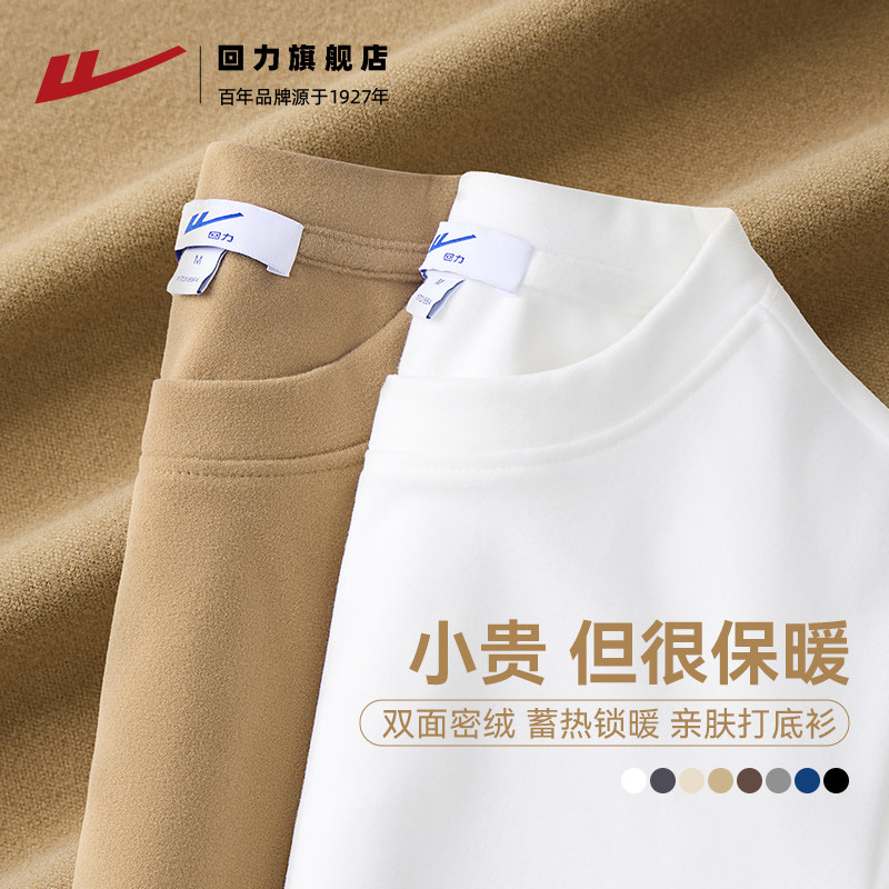 回力打底衫 T恤 男秋冬德绒圆领保暖内搭上衣宽松半高领双面绒长袖