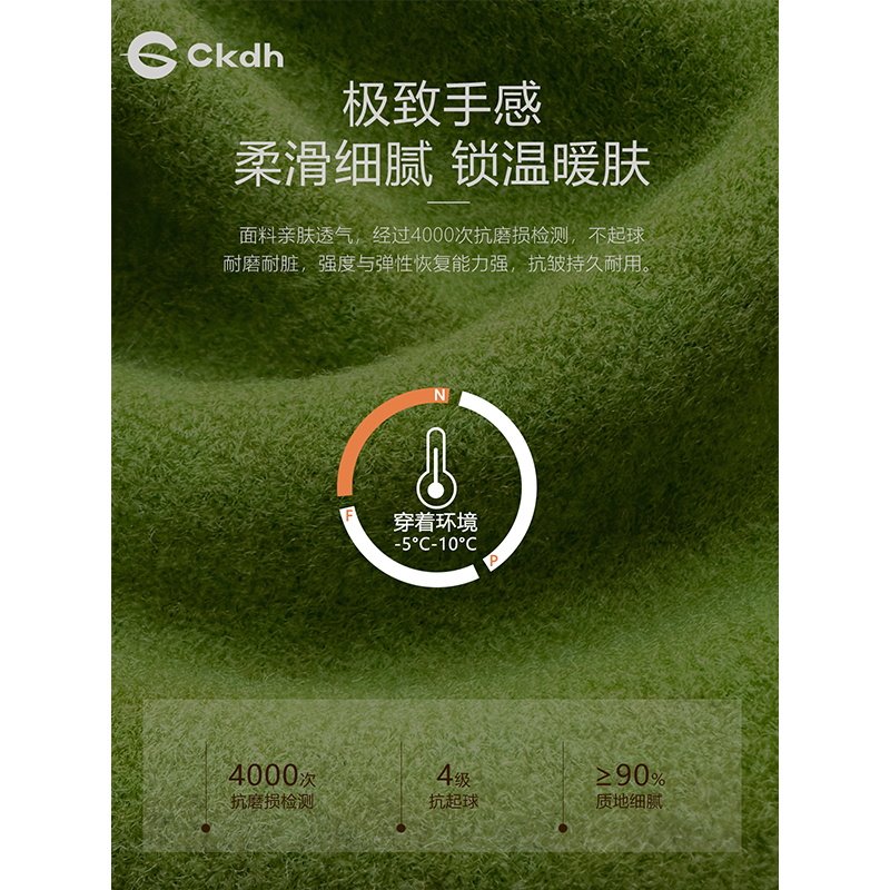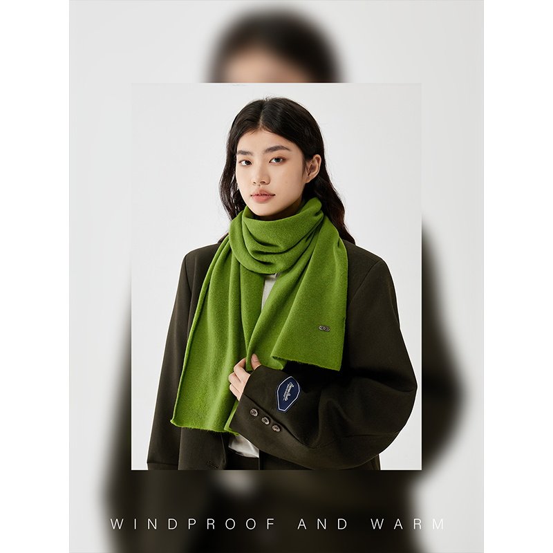 CKDH羊毛混纺绿色保暖围巾男女2025秋冬新款 百搭抗起球针织围脖