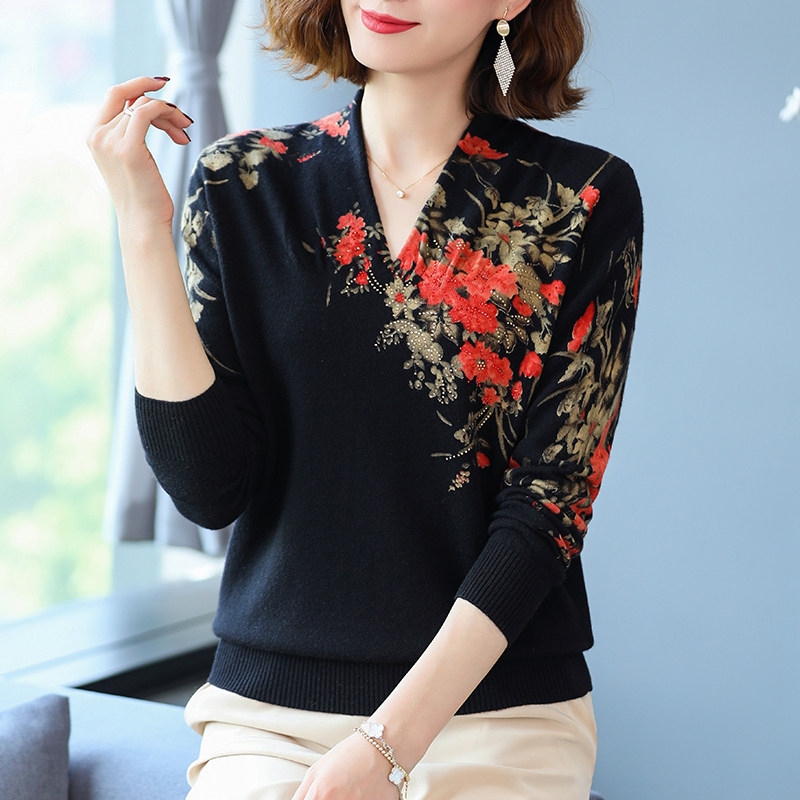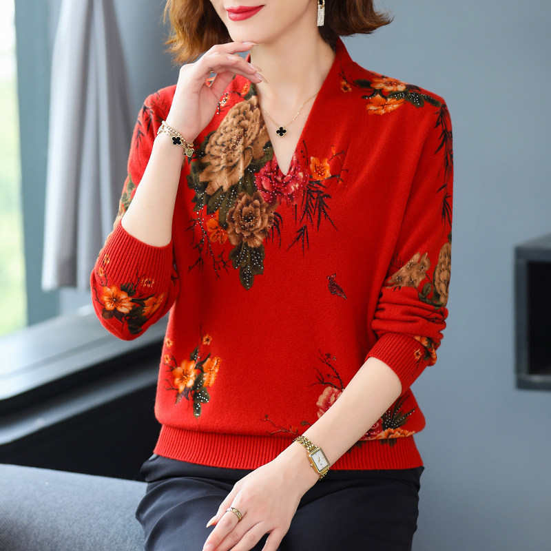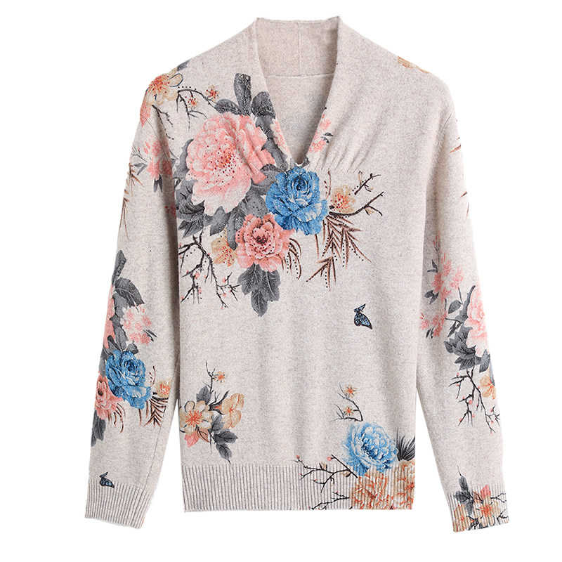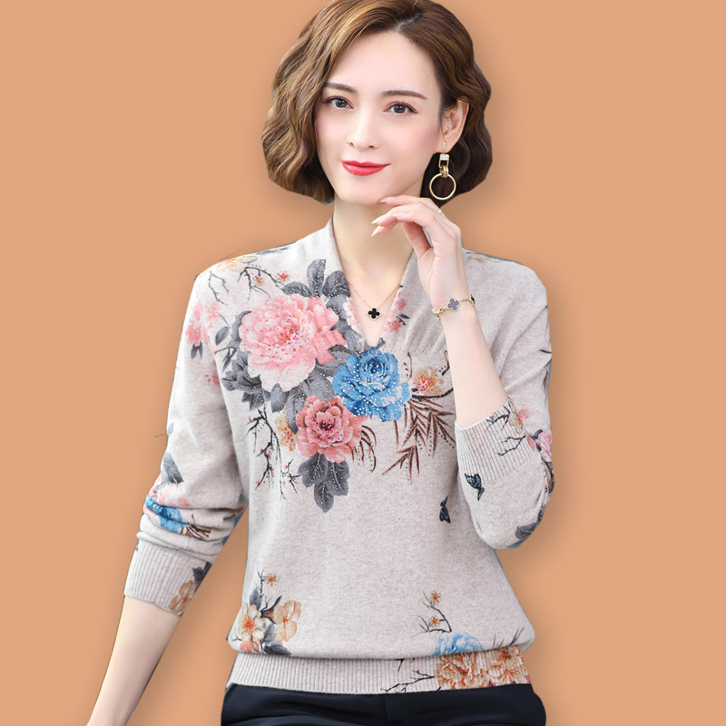 羊绒打底衫 品牌羊毛衫 妈妈毛衣女装 2025秋冬印花大码 针织上衣大码
