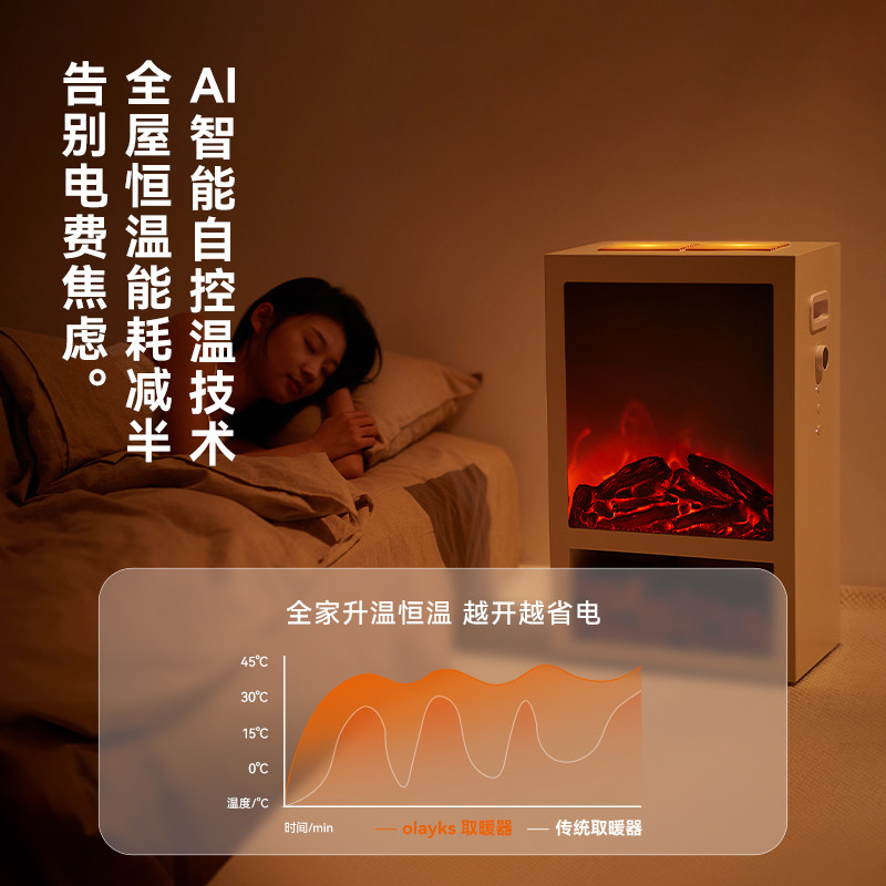 olayks立时煦日取暖器家用新型暖风机电暖气仿真火焰实木电壁炉