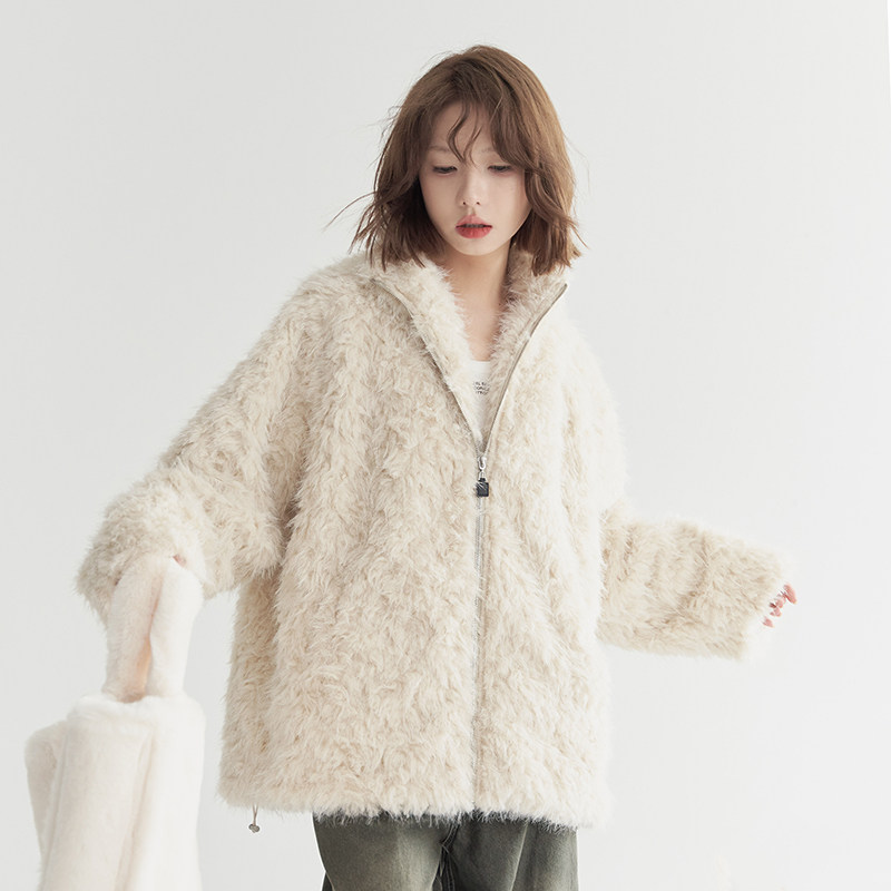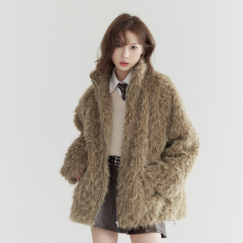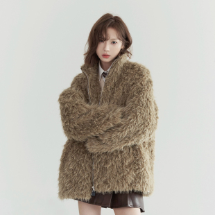 宽松百搭立领上衣 2025年新款 万有引力博物馆 仿皮草外套女秋冬款