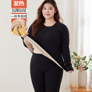 德绒胖mm200斤冬 加绒加厚发热纯棉毛衫 加肥加大码 保暖内衣女套装