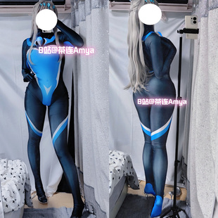 超能女神大祭司摩根勒菲cosplay服装 黑暗侵袭 蓝黑拼接 星月