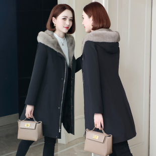 水貂毛貂皮内胆可拆卸海宁皮草尼克服外套中长款 派克服女冬季 新款