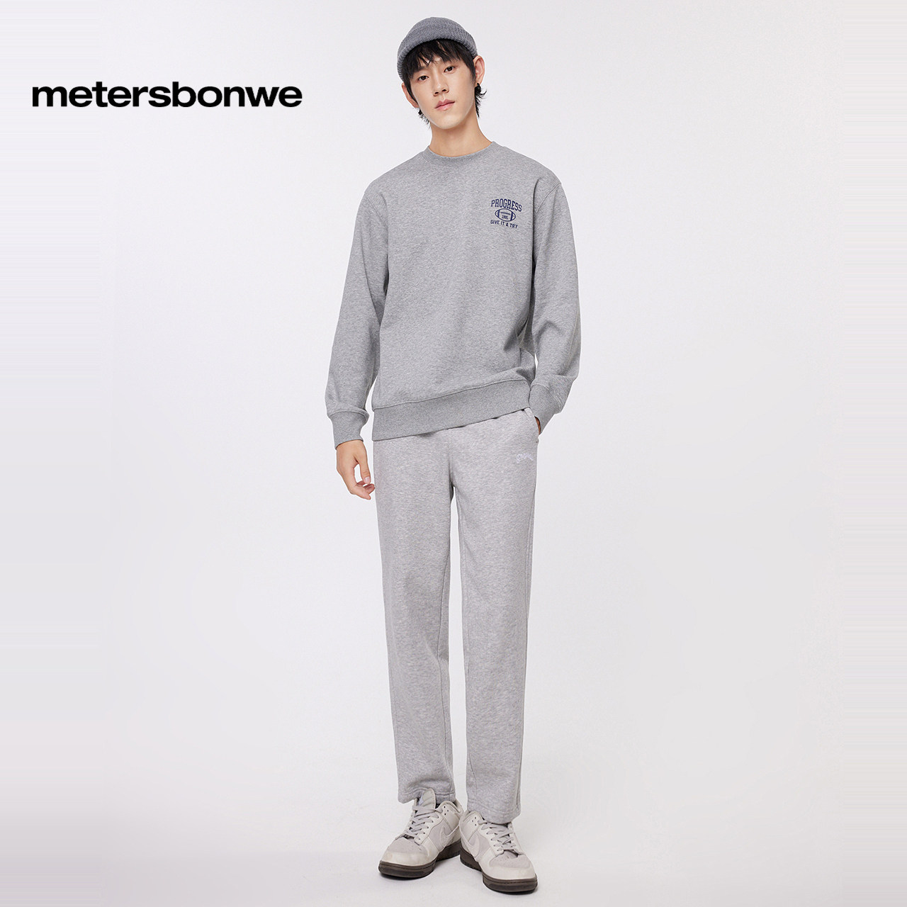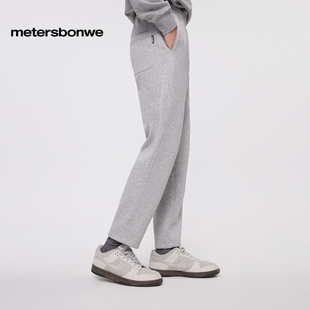 秋冬新款 男士 情侣裤 收脚裤 子 美特斯邦威时尚 绣花长男裤 收脚针织裤