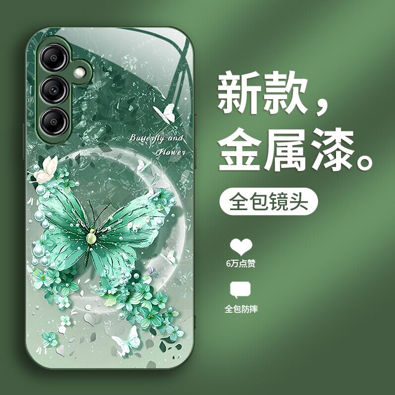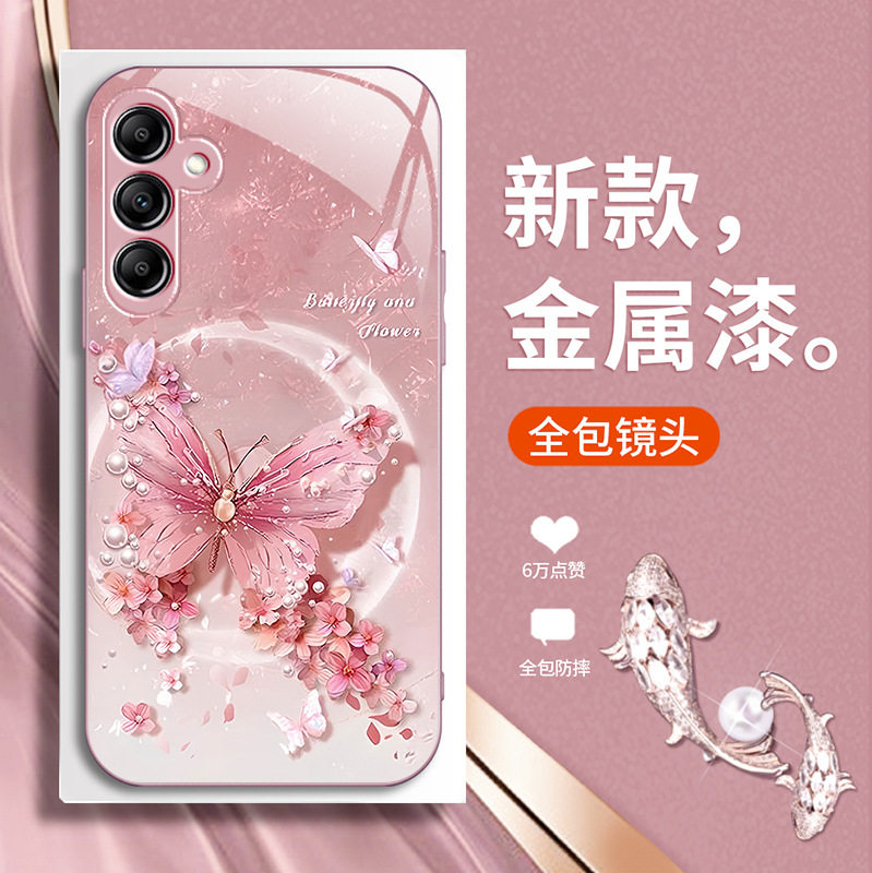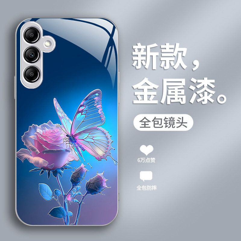 Samsung三星手机壳女适用s23FE蝴蝶玫瑰s24plus玻璃s22ULTRA可爱A55高级感A54全包a14苹果A53外25 加17case56