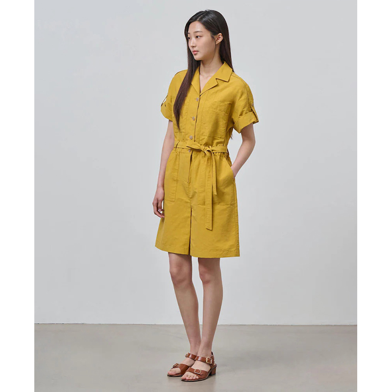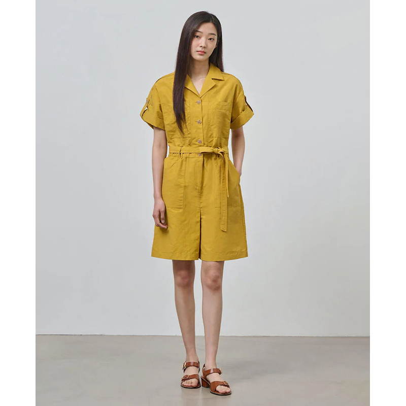 女士亚麻芥末黄色收腰腰带连体短裤 新款 夏季 BEANPOLE滨波