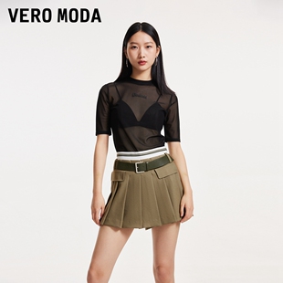 Moda奥莱短裤 裙裤 女春夏新款 学院风高腰气质百褶短款 时尚 Vero