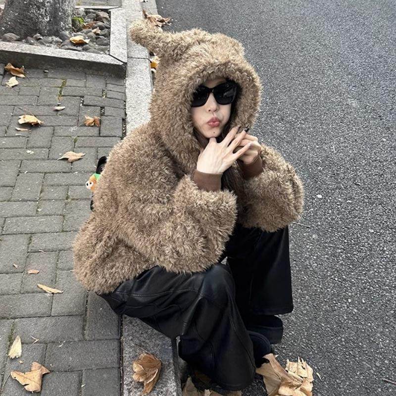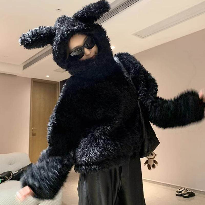 2025冬季 立领小个子可爱风环保毛毛外套皮毛一体显瘦保暖上衣女