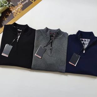 啄木鸟半高领毛衣男加绒加厚纯色宽松冬季 男 一体绒保暖针织打底衫