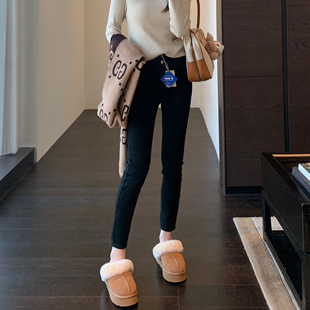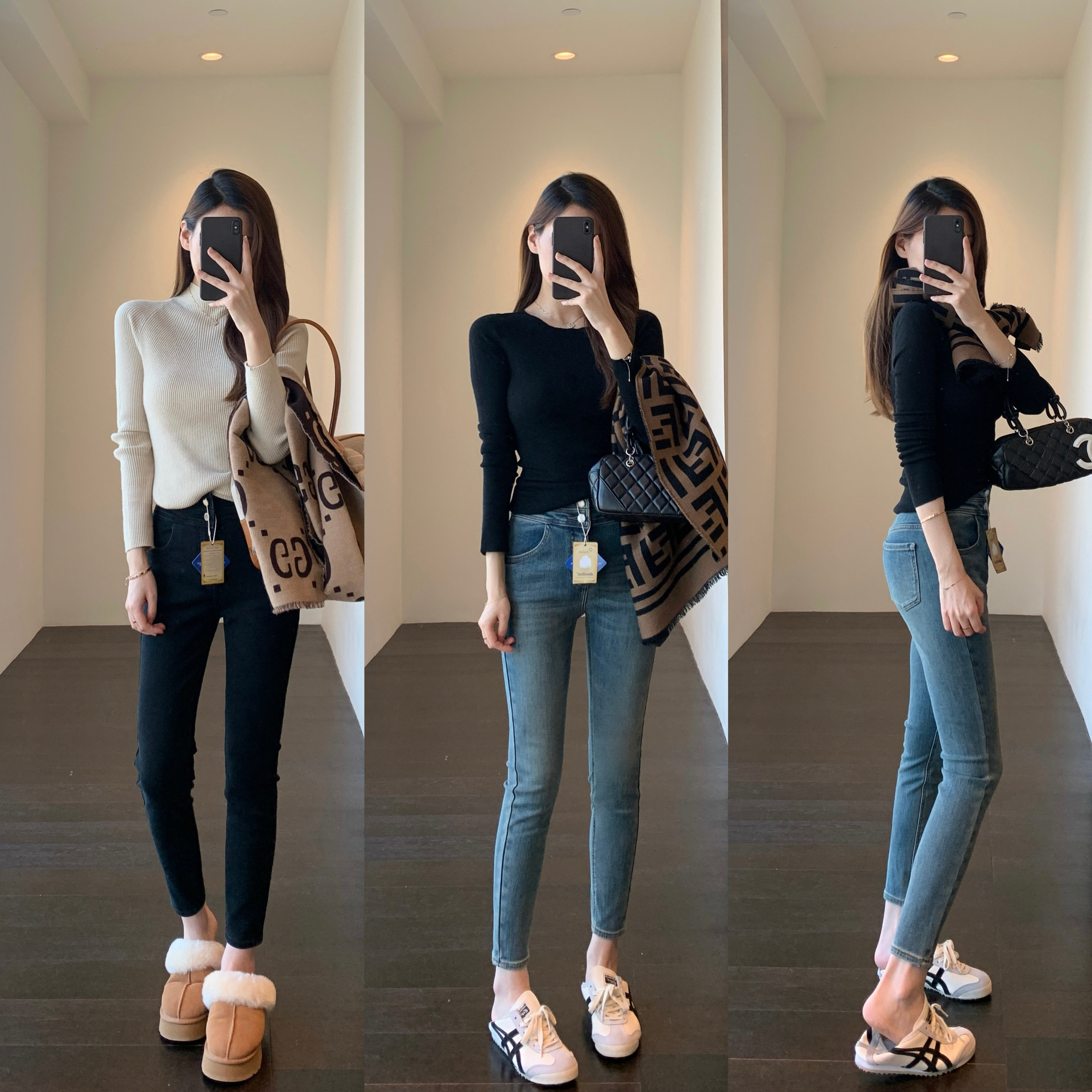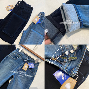 冬季 四面弹高腰显瘦加绒直筒牛仔裤 阔腿裤 子小个子窄版 女秋冬裤